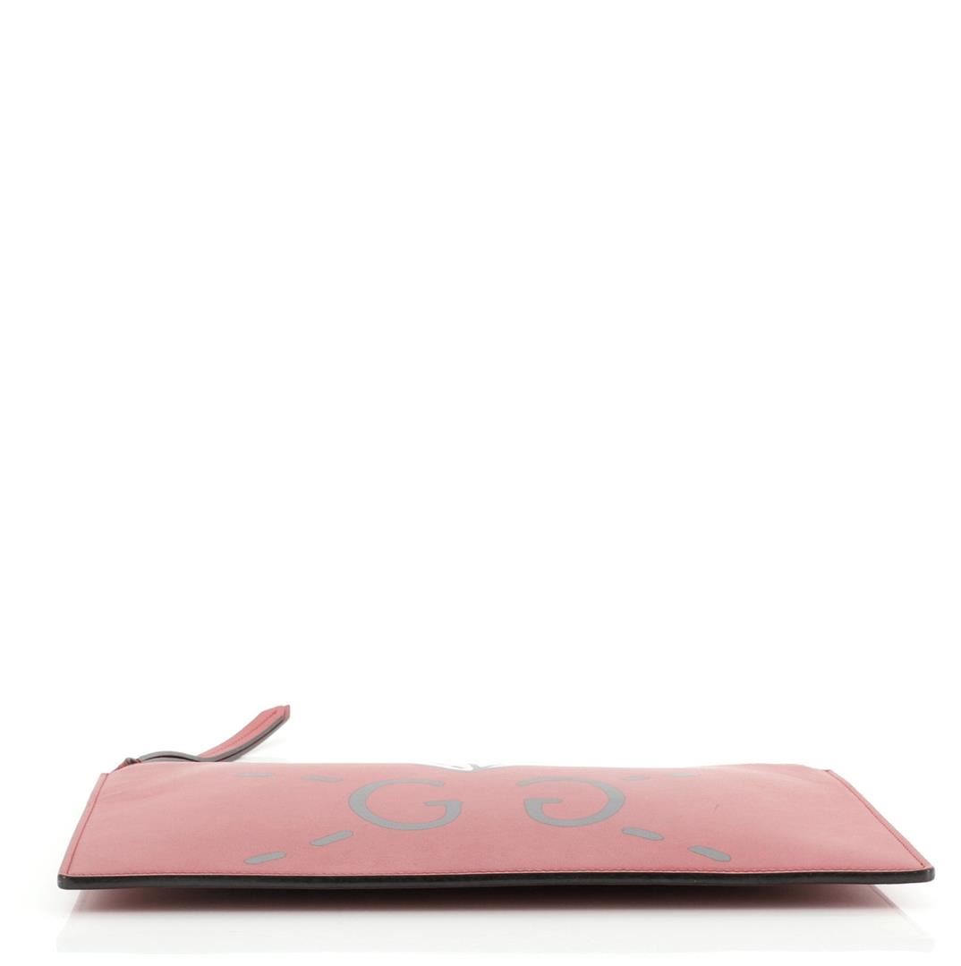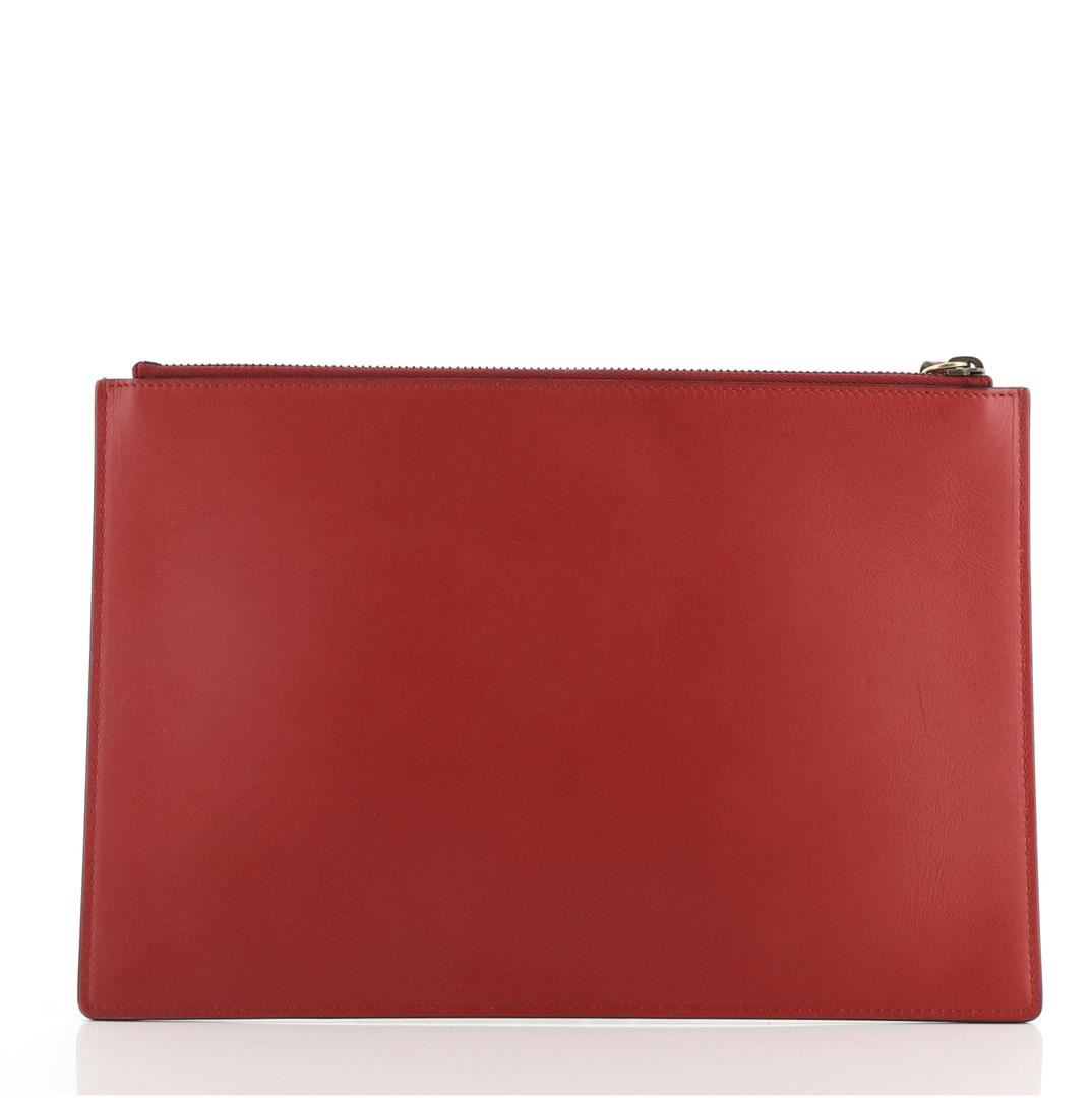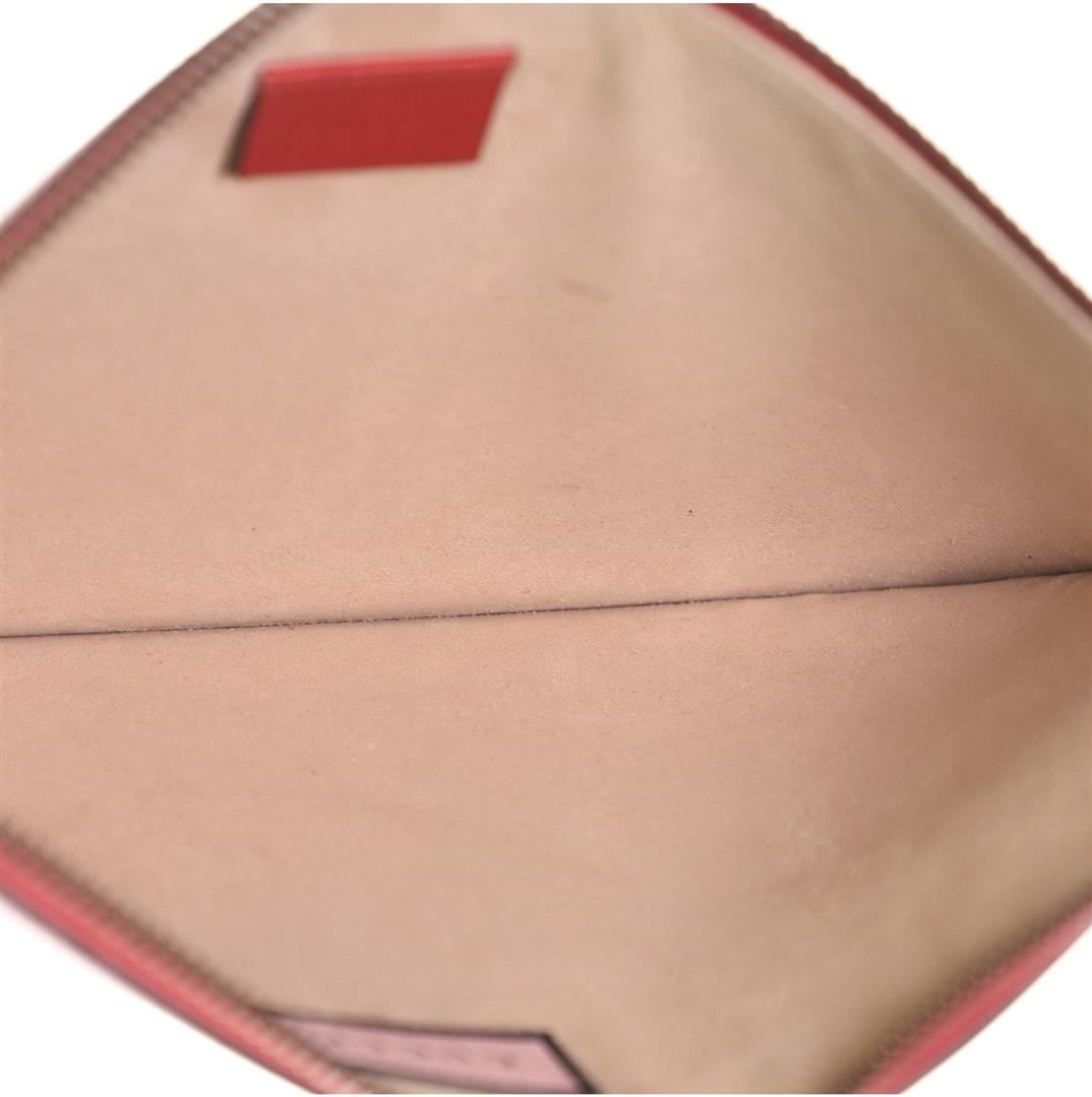 Gucci Red Leather Gucci Ghost Zipped Large Pouch features GG logo print, a zip-around closure, beige Microfiber interior lining and an interior zip pocket.