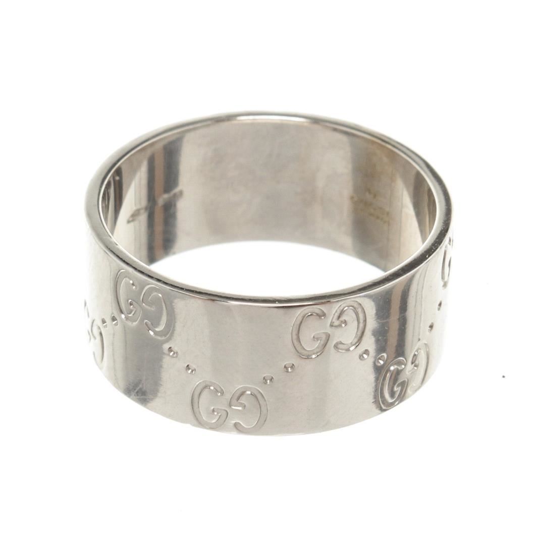 One Gucci SiLouis Vuittoner Icon Wide Ring. Item is sold AS-IS. Please check photos and descriptions for all available details. Gucci Silver Icon Wide Ring with silver-tone hardware. Size: 8