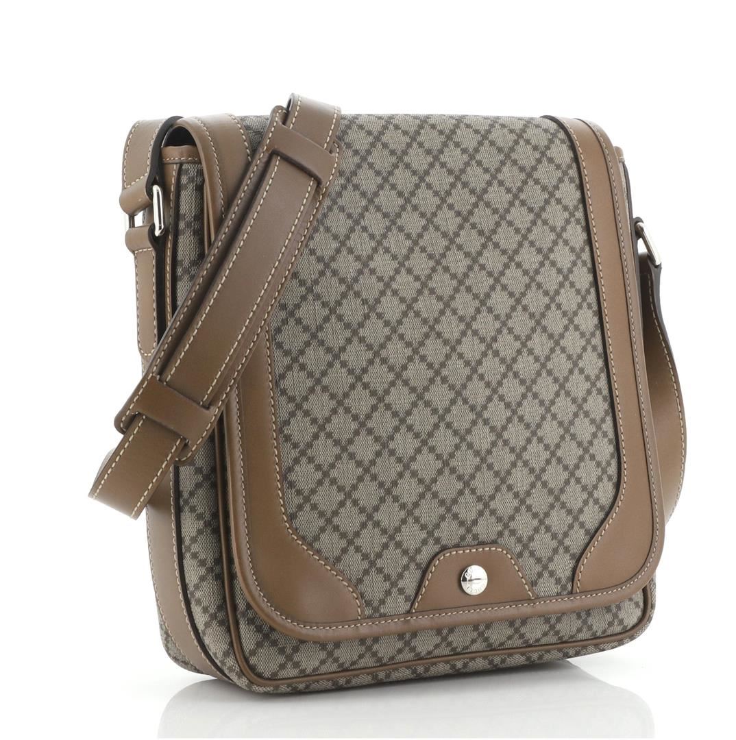 Gucci Snap Flap Messenger Bag Diamante Coated Canvas Medium Brown Diamante Coated Canvas