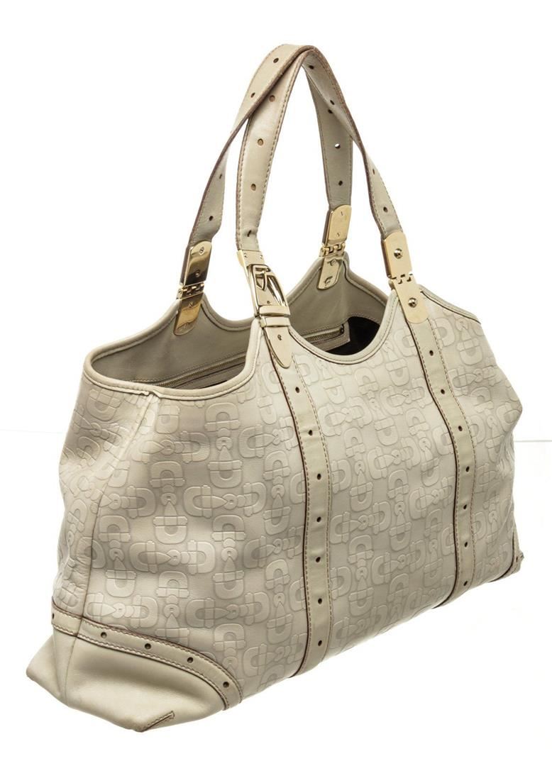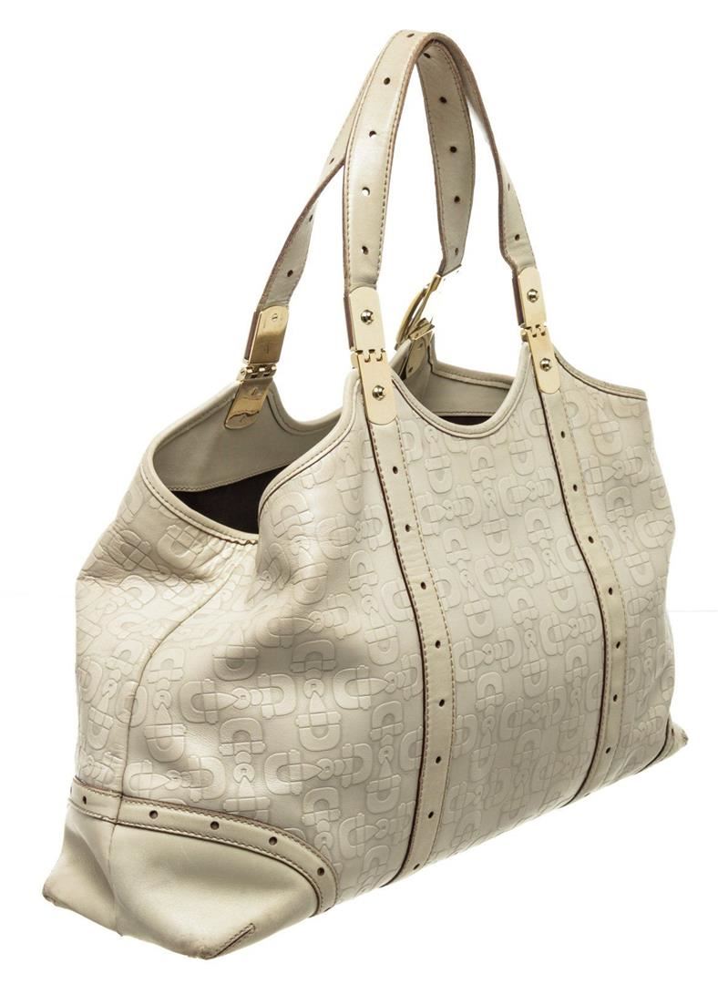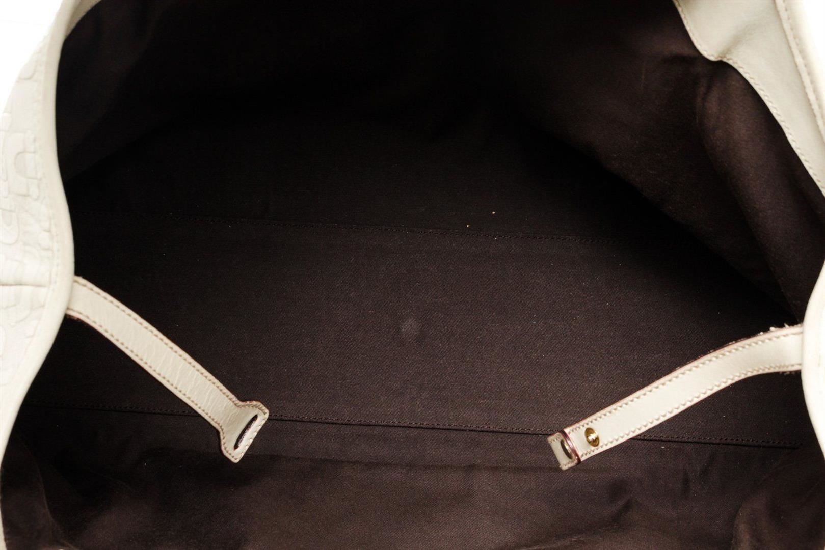 Gucci White Leather Large Hobo Bag with leather, gold-tone hardware, trim leather, interior slip pocket, dual top handle and flap closure.