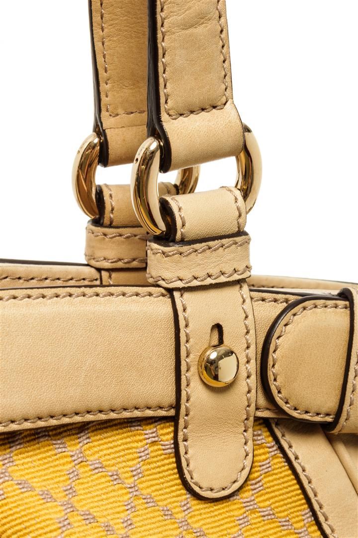 One Gucci Yellow Bambus Gelb Diamante Handbag. Item is sold AS-IS. All available information is listed in the description and shown in the photo. Gucci Yellow Bambus Gelb Diamante Handbag 9.84"h x 11.02"w x 7.87"d / height : ~ 25 cm width : ~ 28 cm -40 cm depth : ~ 20 cm handle : ~ 17.5 cm
