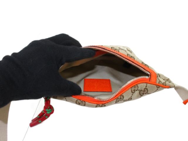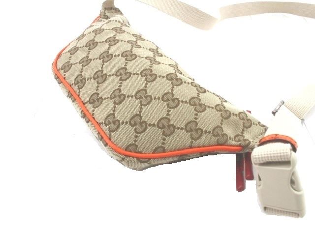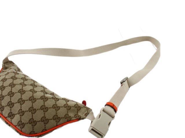 One Gucci x North Face Beige/Ebony GG Canvas Leather Belt Bag. Item is sold AS-IS. All available information is listed in the description and shown in the photo. GG Beige Canvas Orange Leather