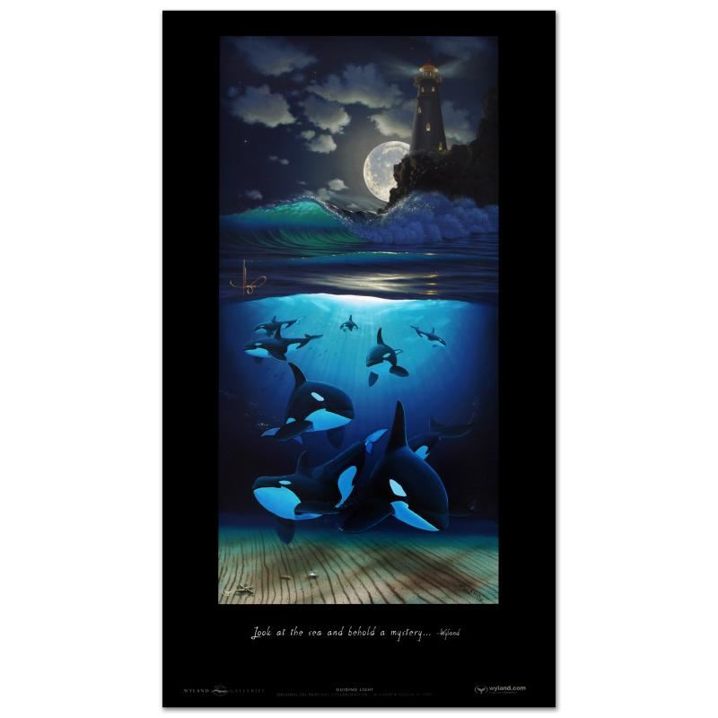 "Guiding Light" is a poster by Wyland. Measures approx. 14.5" x 26" (image). Please allow 5 additional business for items that include canvas stretch or framing.