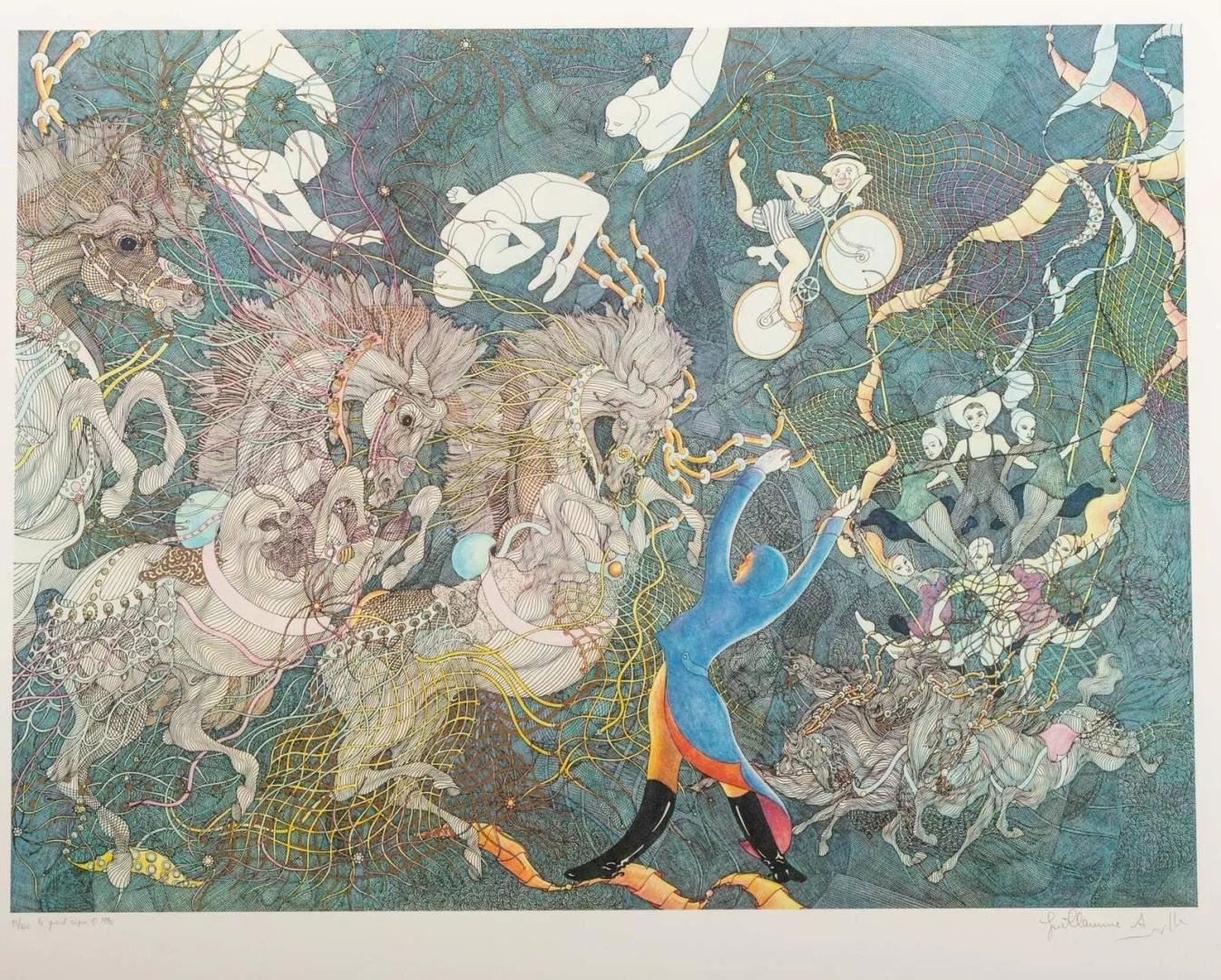 A hand signed serigraph on paper by Azoulay. Image 27" x 33", edition of 120, unframed with COA
