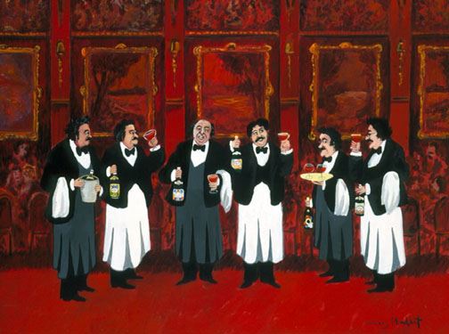 Guy Buffet "Beaujolais Nouveau" - is a limited edition Lithograph on paper, 23x28 inches, signed number by artist. small pencil original in white border of print.