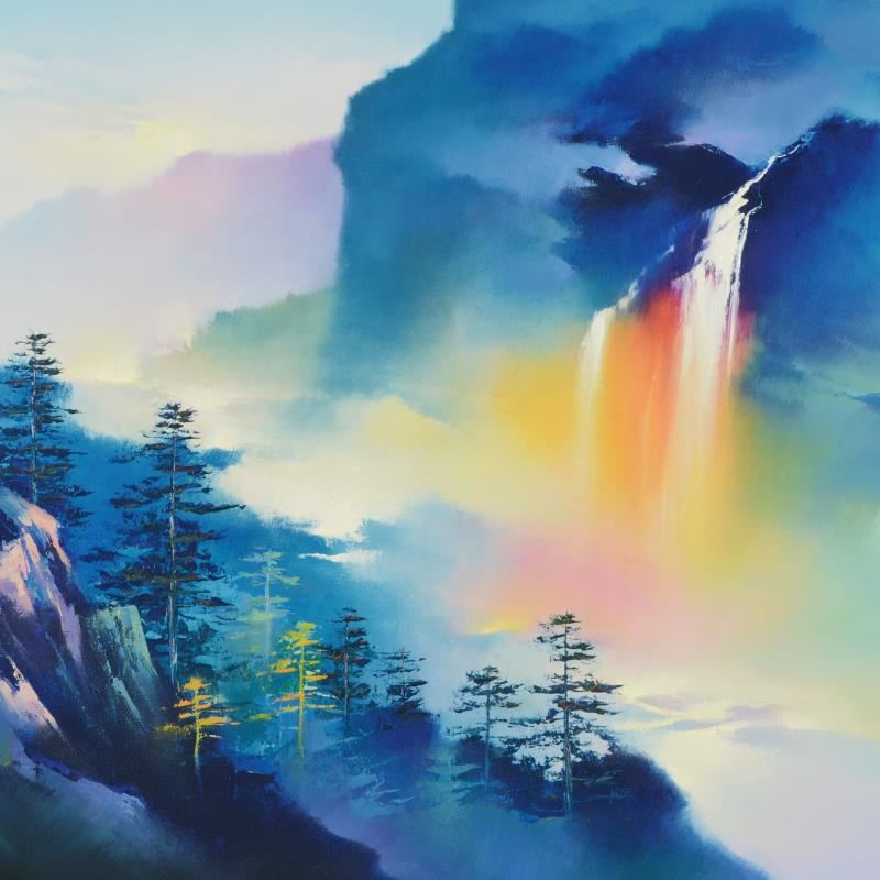 "Rainbow Valley" is a hand embellished limited edition giclee on stretched canvas by H. Leung, numbered 75/100 and hand signed by the artist. Includes Letter of Authenticity. Measures approx. 29" x 22" (image).