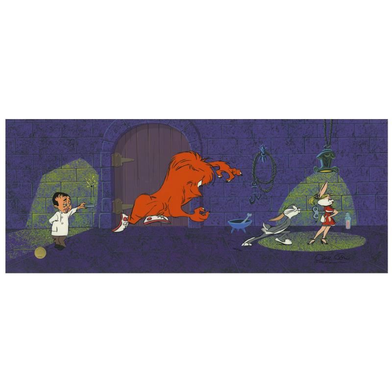 "Hair Raising Hare" is a limited edition animation cel with hand painted coloring on sericel outline. The piece is numbered, hand signed by Chuck Jones (1912-2002), and includes a Certificate of Authenticity! Measures Approx: 16.5" x 13.5"