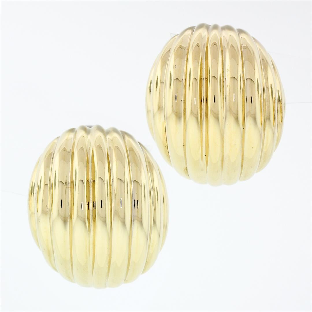 A pair of solid 14k yellow gold puffed button earrings by Hammerman Bros. The earrings measure approximately 21.06x18.26mm and weigh a total of 16.24 grams.
