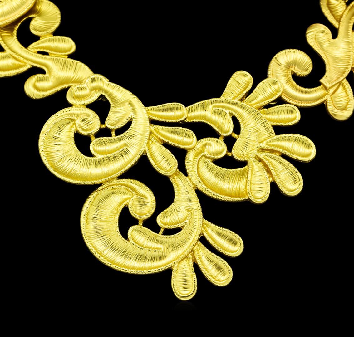 High end designer jewelry. Hand Painted Necklace - Gold Plated. Gold Plated Chain/3" Ext Clasp. Gold. 16inches. Total Weight: 67.6 grams.