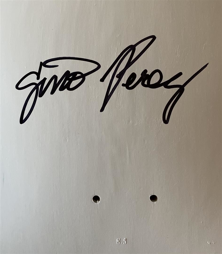 LA Raised by Gino Perez. "LA Raised" is a wood Sugar Skate Co deck, with hand painted original artwork by Gino Perez, and hand signed. Measures approximately 32" x 8.5". Year 2019. Never mounted or displayed.