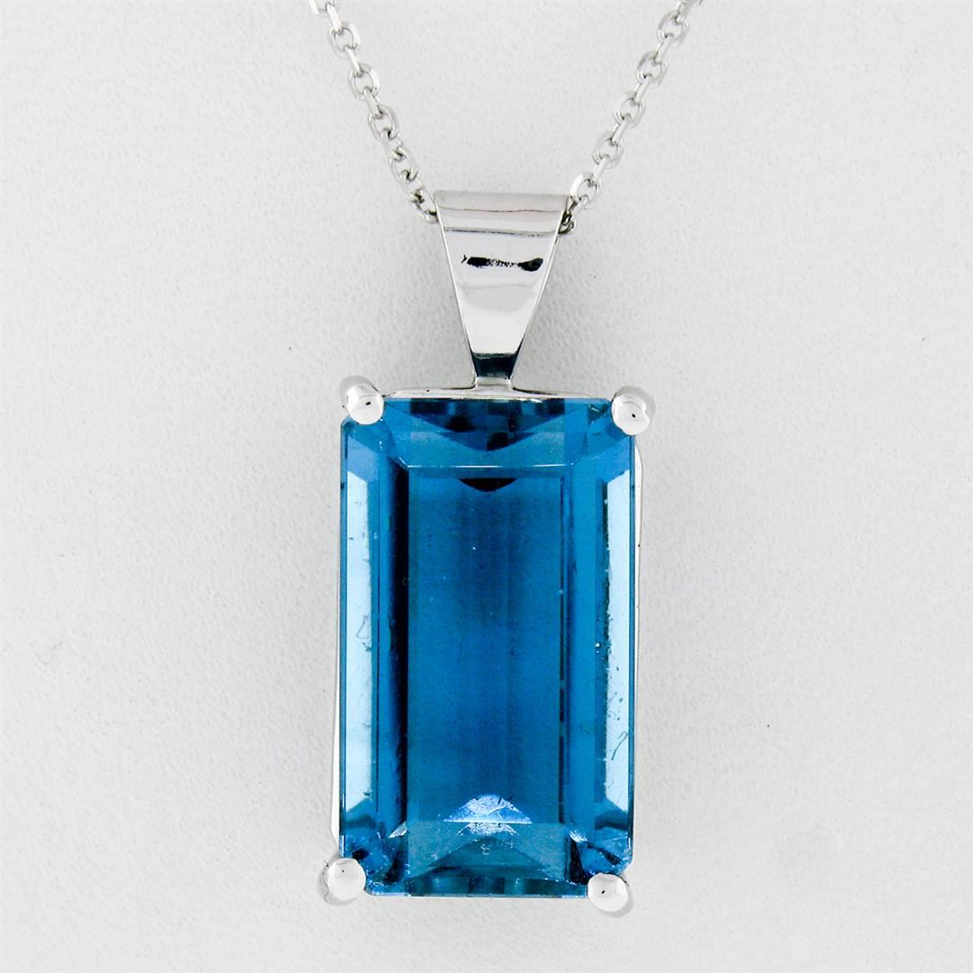 A new solid 14k white gold handmade pendant necklace, with 1 emerald cut natural topaz (18.0x10.7mm- 16.65ct).The pendant weighs a total of 6.98 grams, measures 26.50x11.50mm including the bail, and 16 inch cable link chain
