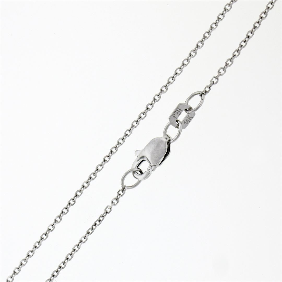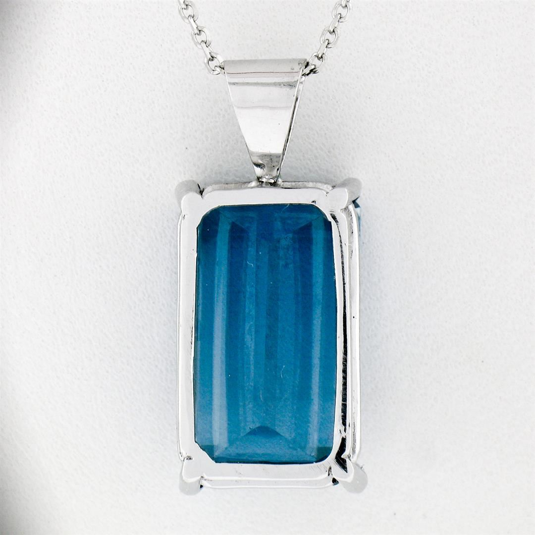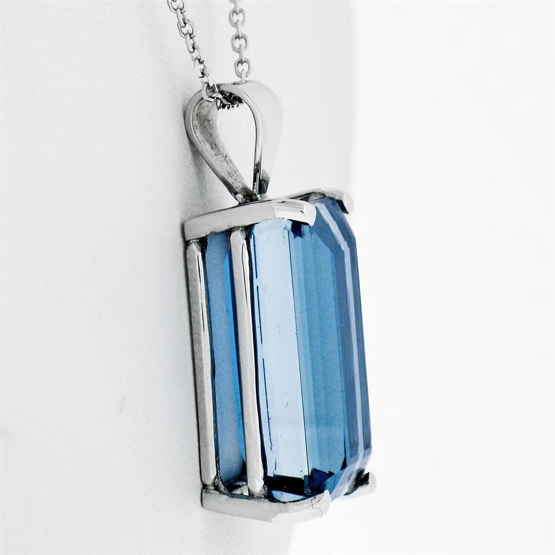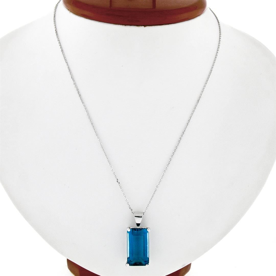 A new solid 14k white gold handmade pendant necklace, with 1 emerald cut natural topaz (18.0x10.7mm- 16.65ct).The pendant weighs a total of 6.98 grams, measures 26.50x11.50mm including the bail, and 16 inch cable link chain