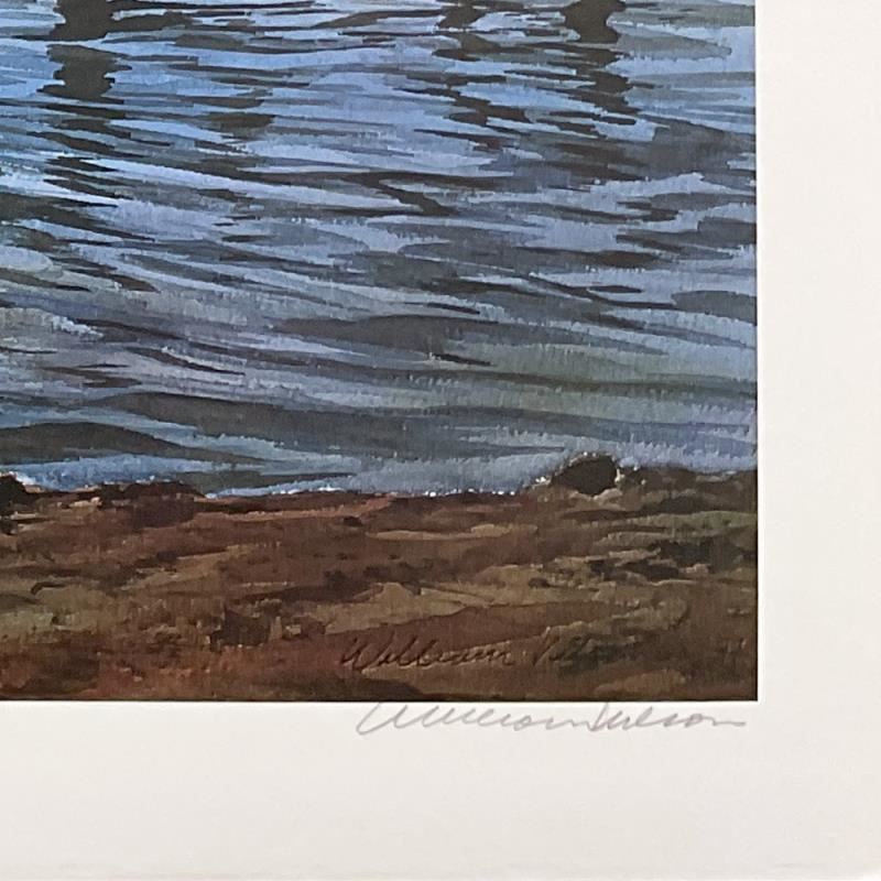 Hansen's Pier by Nelson, William. "Hansen's Pier" is a limited edition lithograph on paper, numbered and hand signed by William Nelson. Includes Letter of Authenticity. Measures approx. 28" x 22.5" (border), 25" x 19" (image). ** Please note: there are imperfections in the white border area; particularly, there are creases and wear along top border that may be cropped when the piece is framed. **