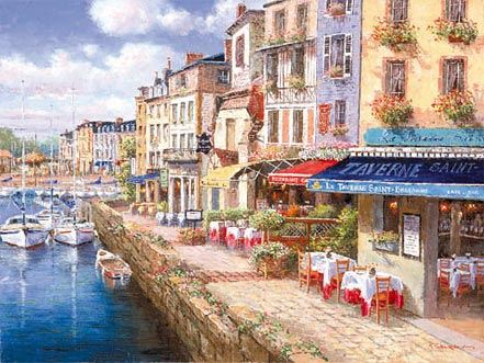 Harbor at Hon Fleur by Sam Park. Unframed and stretched on Limited Edition enhanced canvas. Comes with certificate of Authenticity! Dimension (inches): 18x24