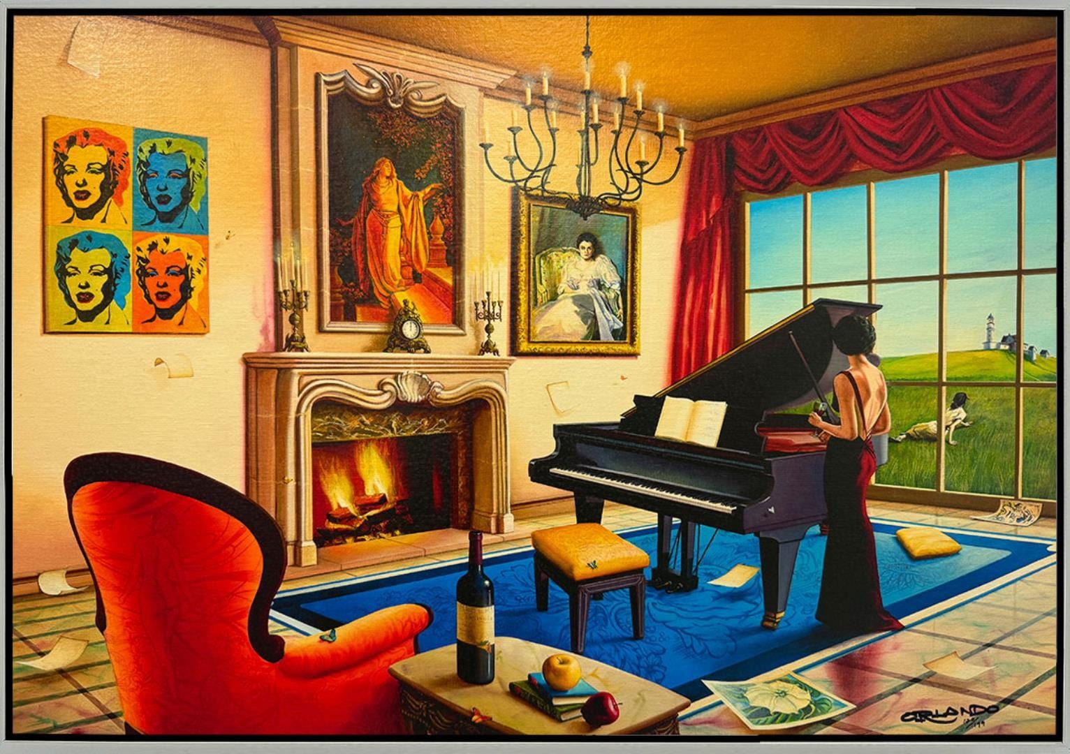 Bright beautiful collectible imited edition giclee on canvas, signed and numbered. This artwork comes beautifully framed and ready to hang. Art size 31x22 inches.