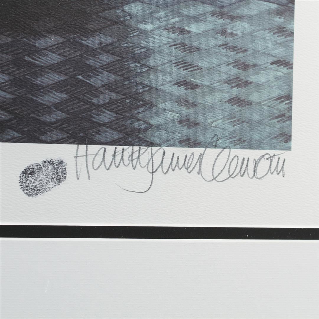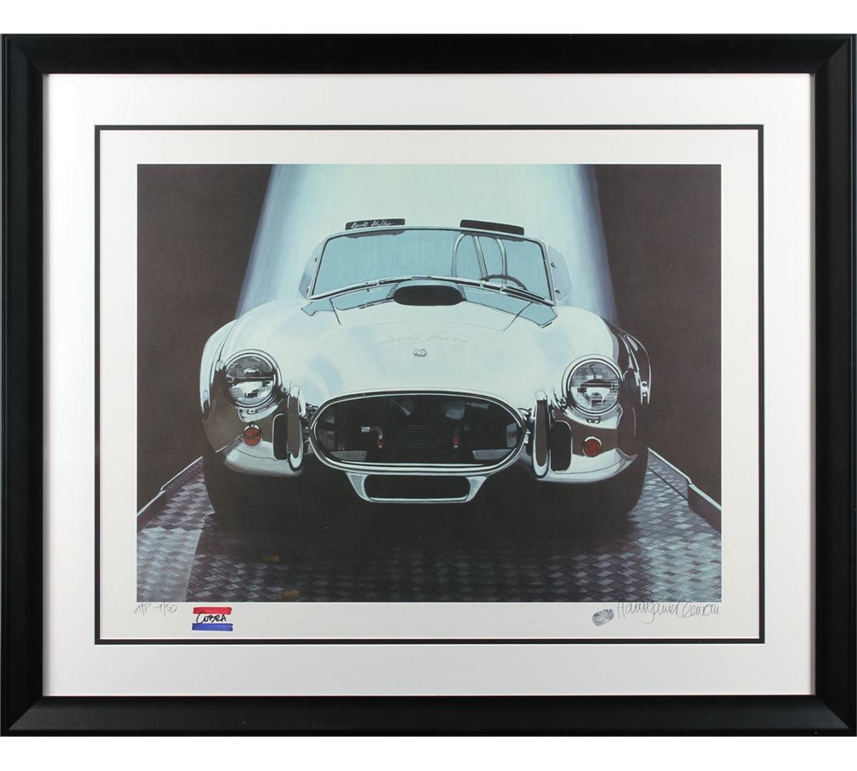 Special Artist's Proof Limited Edition Lithograph #7 of 50 with Harold James Cleworth Original Signature with vintage enhanced artist's actual thumbprint and original hand sketched re-marking with a Cobra Logo. Original Harold James Cleworth paintings have sold for over $100,000!! Harold James Cleworth was born in the industrial North of England during WWII. After graduating Manchester College of Art in 1967, he moved to London to work for Decca Records illustrating the first album covers for the Rolling Stones, The Who and other new groups. In 1972, he moved to California choosing automobiles as the new subject. The Chase Manhattan Bank of Zurich bought his first original and private collectors began to commission him to paint portraits of their Bugattis, Duesenbergs and Ferraris. Galleries invited him to exhibit in San Francisco, Santa Monica, Beverly Hills and Carmel. The dimensions are 41 inches by 34 inches. Comes with Certificate of Authenticity.