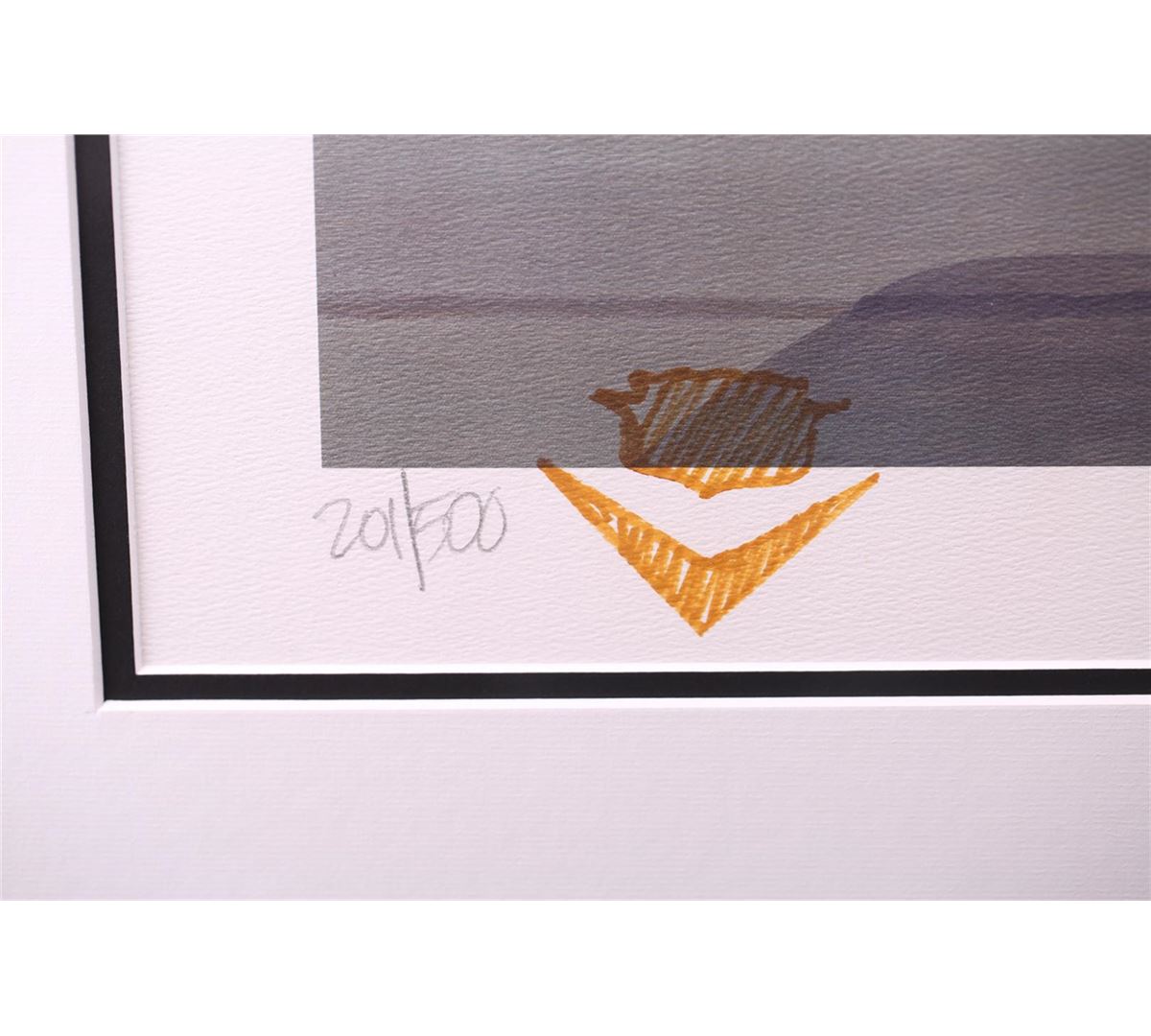 Limited Edition Lithograph #201 of 500 with Harold James Cleworth Original Signature with vintage enhanced artist's actual thumbprint and original hand sketched re-marking with a Cadillac Logo. Original Harold James Cleworth paintings have sold for over $100,000!! Harold James Cleworth was born in the industrial North of England during WWII. After graduating Manchester College of Art in 1967, he moved to London to work for Decca Records illustrating the first album covers for the Rolling Stones, The Who and other new groups. In 1972, he moved to California choosing automobiles as the new subject. The Chase Manhattan Bank of Zurich bought his first original and private collectors began to commission him to paint portraits of their Bugattis, Duesenbergs and Ferraris. Galleries invited him to exhibit in San Francisco, Santa Monica, Beverly Hills and Carmel. The dimensions are 34 inches by 41 inches. Comes with Certificate of Authenticity.