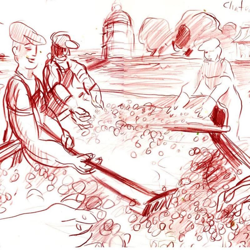 "Harvest at Chateau Latour (Bordeaux)" is an original Pastel on Paper by Wayne Ensrud. The piece is hand signed by the artist and comes with a Certificate of Authenticity. Measures approximately 12" x 17".