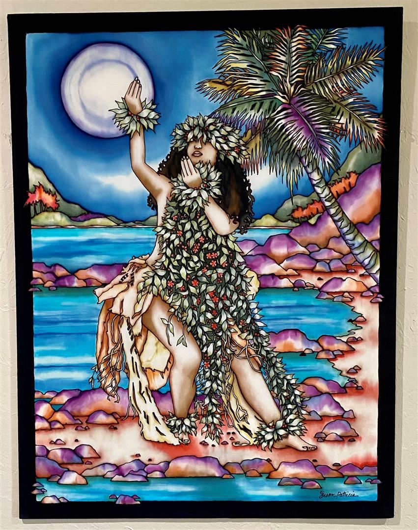 Susan Patricia says this is the sound she hears when it's time to return to the Islands. A 36x27" original on silk/added texture
