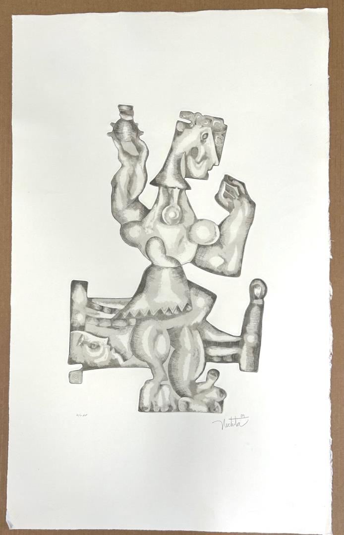 A Nechita figurative etching in muted brown & green ink on rag paper. Paper 34x21" Image and size abstracted. AP6/7.