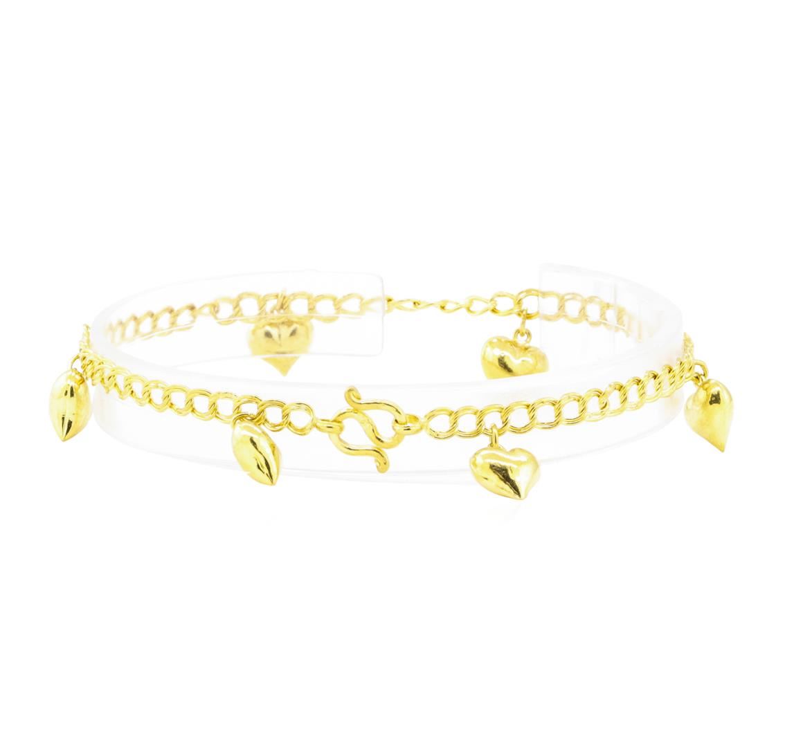 One charm bracelet measuring approximately seven inches in length featuring: 22KT yellow gold weighing 7.7 grams.