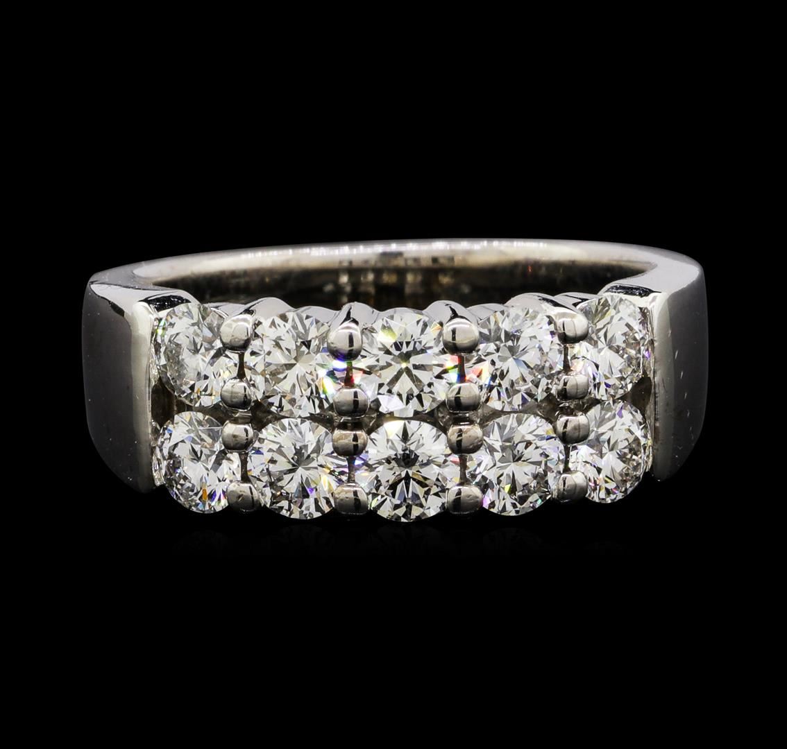 One electronically tested 18KT white gold lady's cast fashion ring with a straight line two row motif with a bright polish finish. The featured lady's ring is a Hearts on Fire 'Enchantment' ring and has a shank measuring 3.40 millimeters wide. Trademark is HoF. Identified with markings of '18K'. Condition is new, good workmanship. Containing: Ten prong set round brilliant cut diamonds, measuring 3.52 - 3.48 x 2.19mm (depth est.) approximate total weight of 10 Stones = 1.52ct. Graded in the setting. Color G - H Clarity VS-1 to VS-2 Cut Ideal. Total Weight of Diamonds 1.52ct.. Total Weight of Ring 9.30gm GAS Appraised at $7900.00. GAS Appraised at $7,900.00.