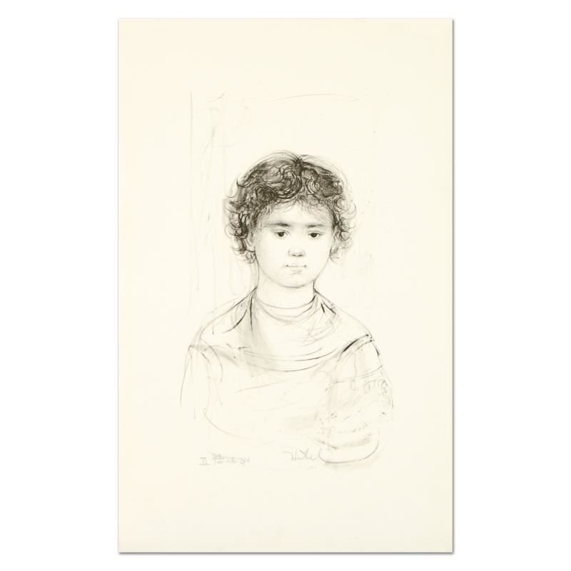 "Henri" is a limited edition lithograph on paper by Edna Hibel (1917-2014), numbered and hand signed by the artist. Includes Certificate of Authenticity. Measures approx. 12.5" x 20" (border), 8.5" x 14.5" (image).