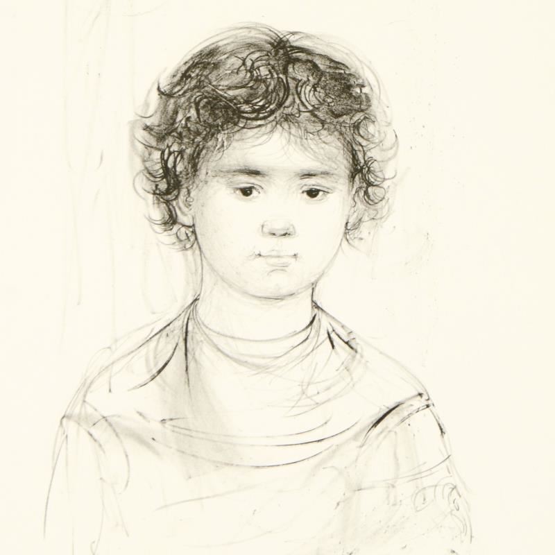 "Henri" is a limited edition lithograph on paper by Edna Hibel (1917-2014) numbered and hand signed by the artist. Includes Certificate of Authenticity. Measures approx. 12.5" x 20" (border) 8.5" x 14.5" (image).