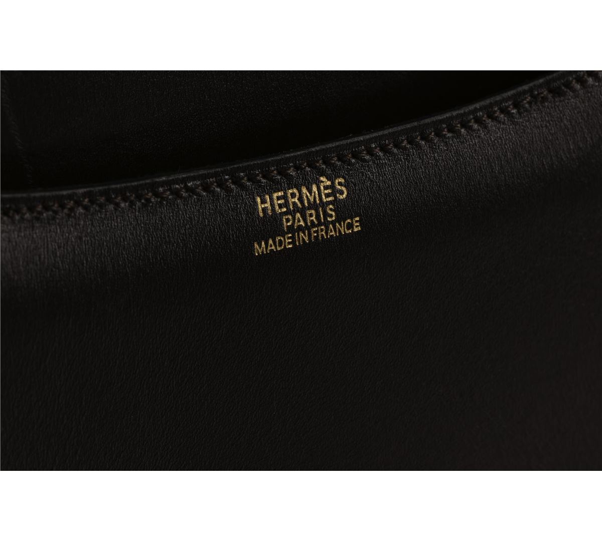 The Constance bag is the perfect Hermes shoulder bag. The shoulder strap can be worn long or short, and the iconic "H" clasp features prominently in gold. The gorgeous Chocolate Calf Box leather is versatile and can be worn for numerous occasions. The interior is Chocolate Agneau leather with two compartments, one zip pocket, and one slip pocket. This bag is in Very Good Condition. The front exterior has a few faint scratch marks. The rear exterior has some light scuffs. The shoulder strap is in Excellent Condition. The hardware shows wear and the backing on the reverse of the clasp has been removed. The interior has light scuffing and a small area of light stains. The leather lining under the flap has been recently replaced. Hermes box included. 9" Width x 6" Height x 2" Depth.