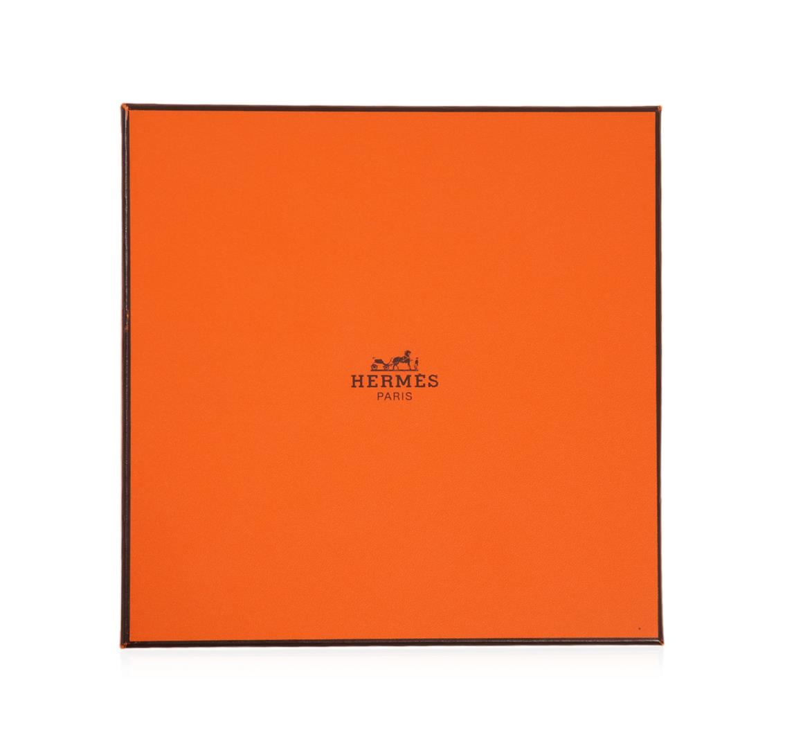 One Hermes cotton scarf in good condition, measuring 60cm by 60cm. The scarf features various animals in greyscale on yellow and pink platforms set against blue/green foliage with a pink border. Comes with an Hermes scarf box.