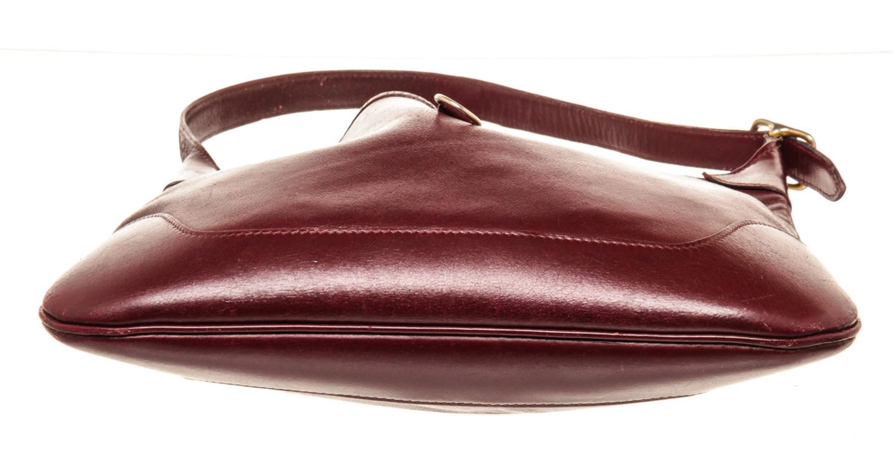 Hermes Amarante Leather Trim Hobo Bag. All available information is listed in the description and shown in the photos. Hermes Amarante Leather Trim Hobo Bag with leather, gold-tone hardware, trim leather, leather lining, shoulder strap and snap closure.