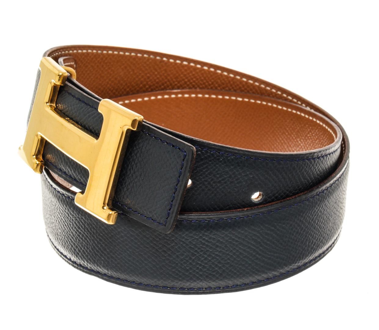 One Hermes Black Brown Togo Leather H Reversible 70 Belt. Item is sold AS-IS. All available information is listed in the description and shown in the photo. Hermes Black Brown Togo Leather Reversible Belt featuring gold-tone "H" buckle and peg-in-hole closures. Designer size 70. .