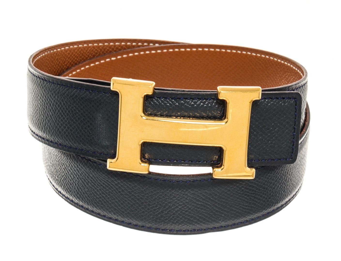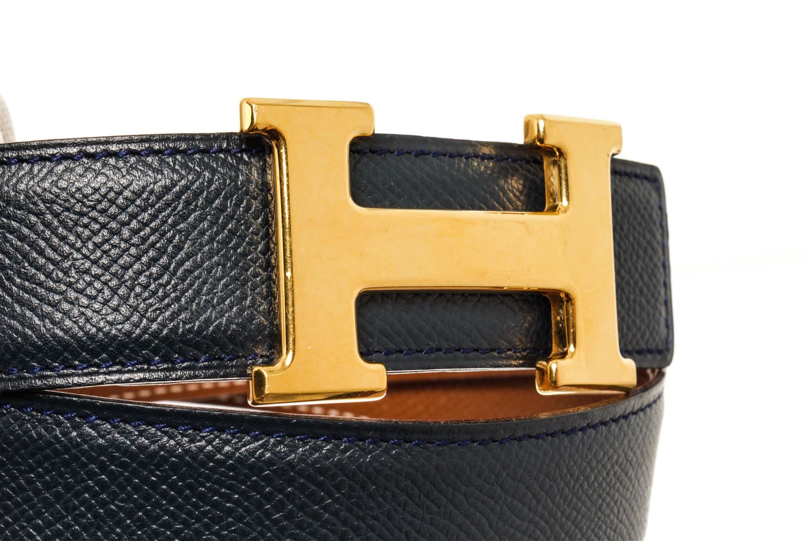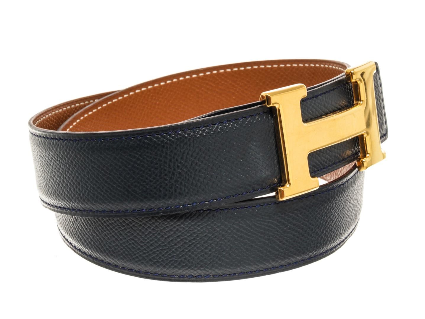 One Hermes Black Brown Togo Leather H Reversible 70 Belt. Item is sold AS-IS. All available information is listed in the description and shown in the photo. Hermes Black Brown Togo Leather Reversible Belt featuring gold-tone "H" buckle and peg-in-hole closures. Designer size 70. .