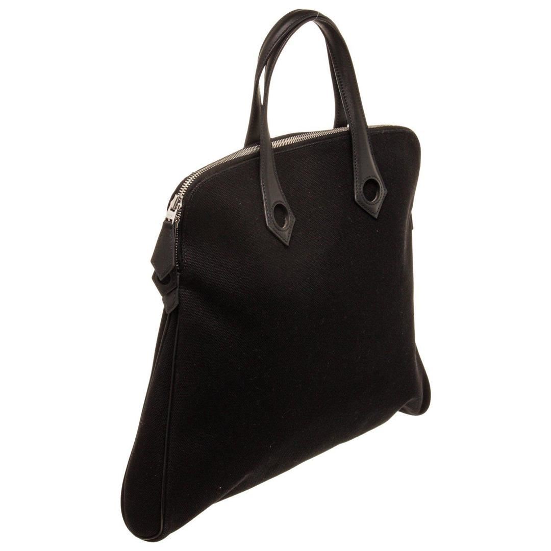 Hermes Black Canvas Heeboo Satchel Bag with canvas, gold-tone hardware, trim leather, leather lining, shoulder strap and snap closure.