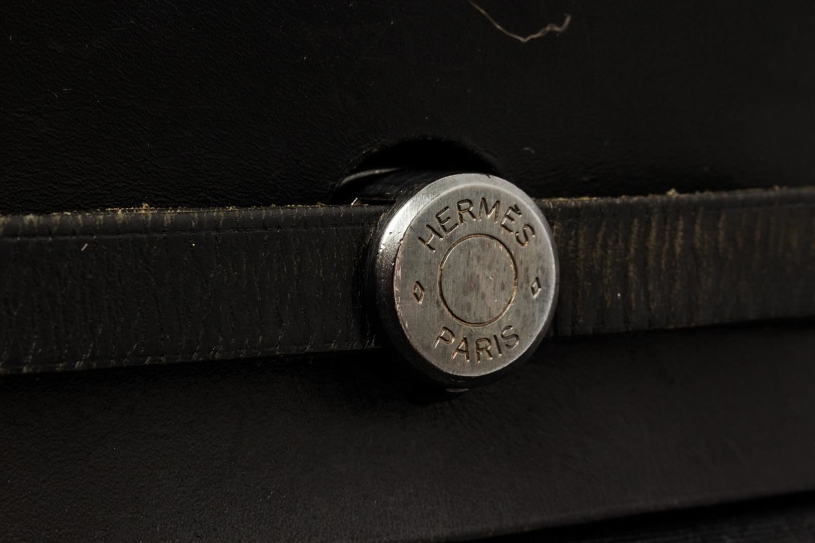 Hermes Black Canvas Toile Off Herbag. All available information is listed in the description and shown in the photos. Hermes Black Canvas Toile Off Herbag with alladium-plated hardware, leather trim, flat handle, single shoulder strap and pull-through closure at front. Height: 15.5" Width: 19.5" Depth: 5.5", Handle Drop: 2.25" / 39.37 x 49.53 x 13.97 Cm