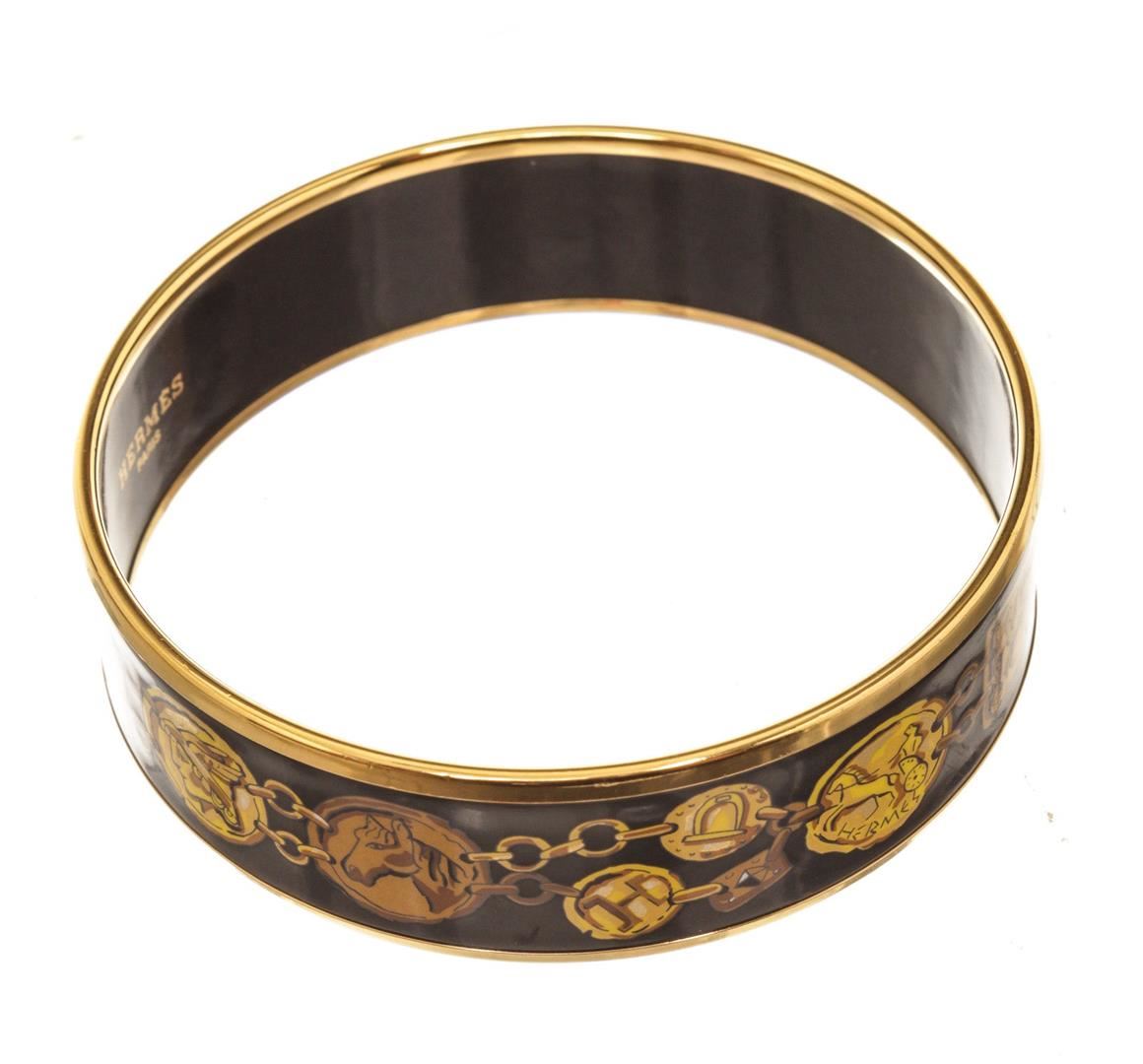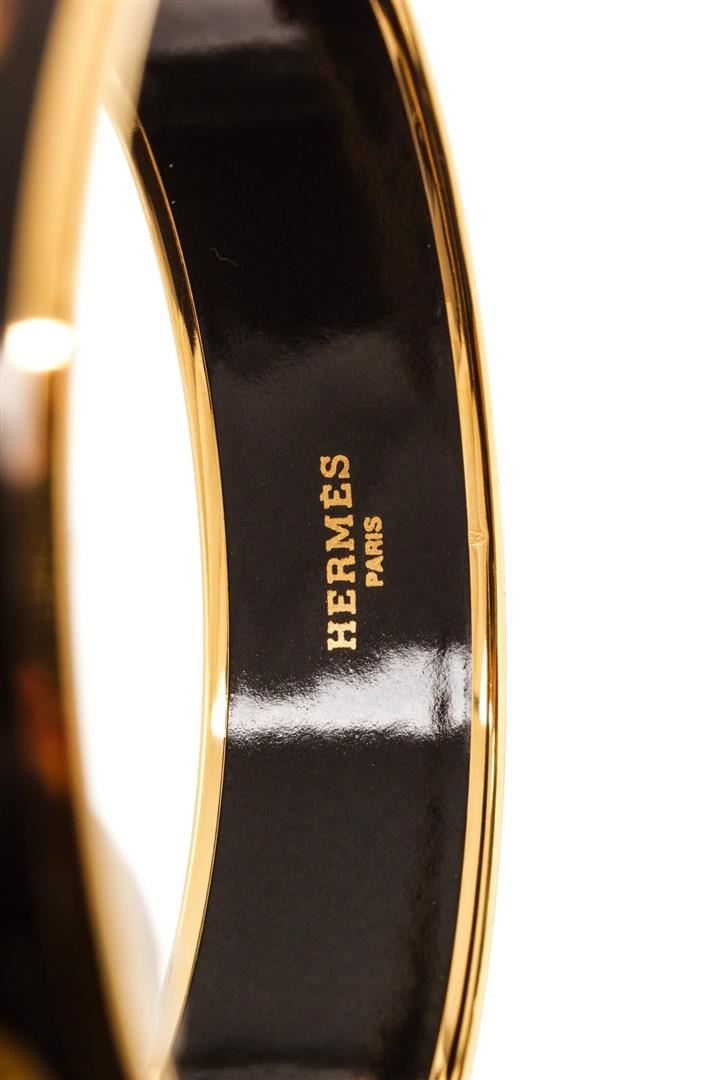 Hermes Black Gold Enamel Bangle with gold-tone hardware.