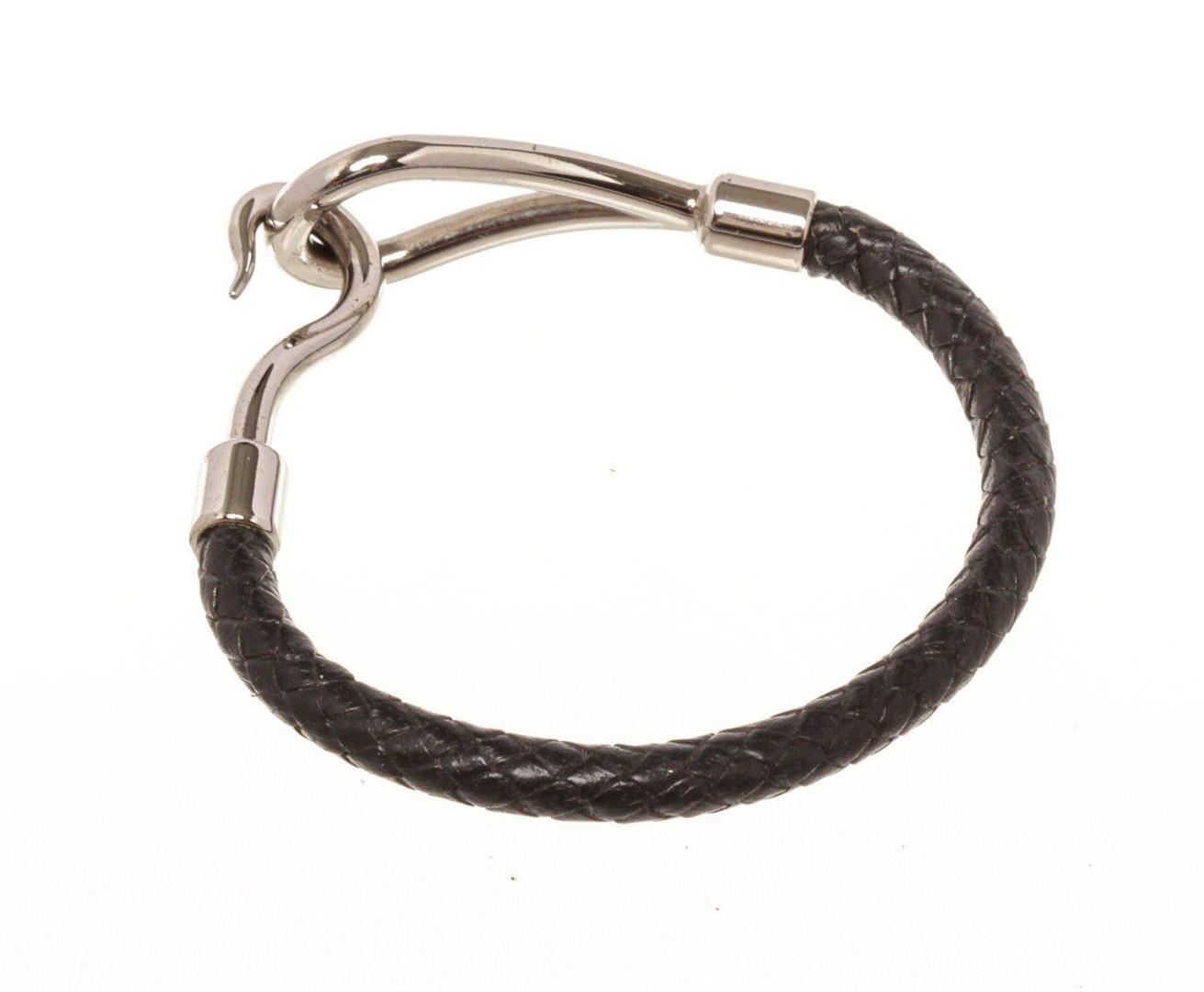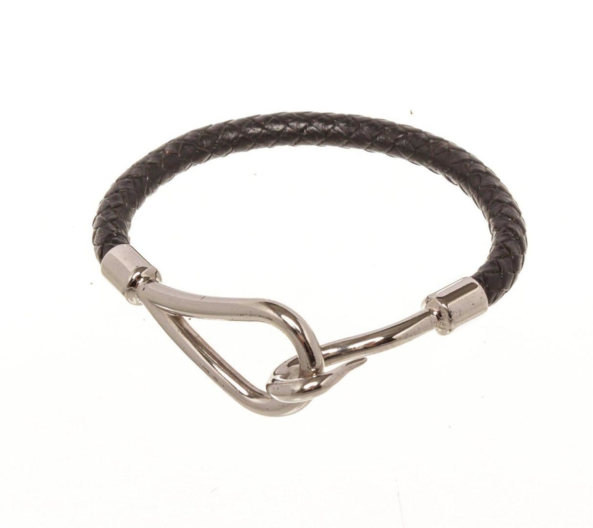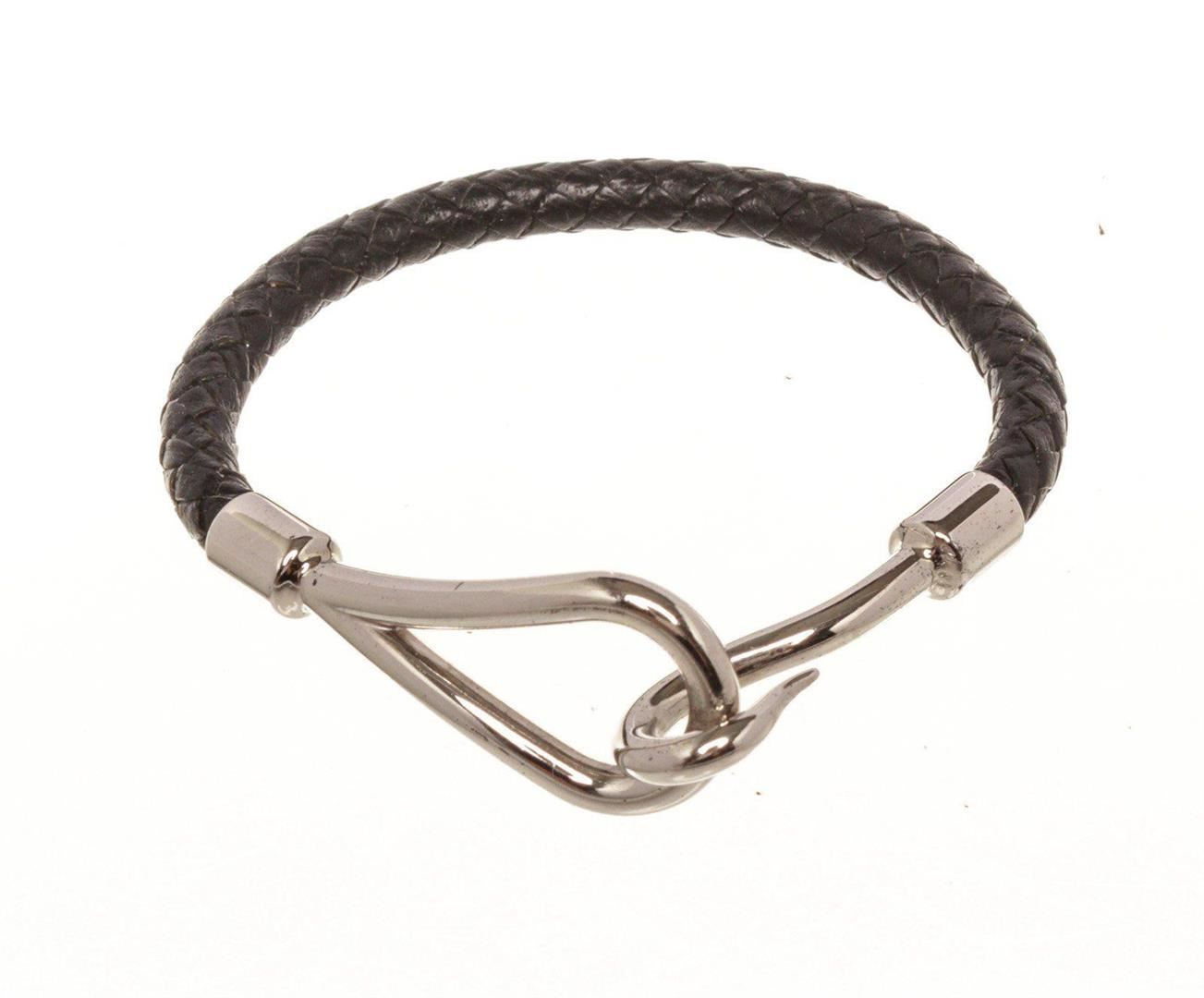 Hermes Black Jumbo Hook Cord Bracelet with gold-tone hardware.