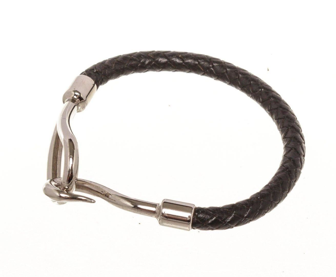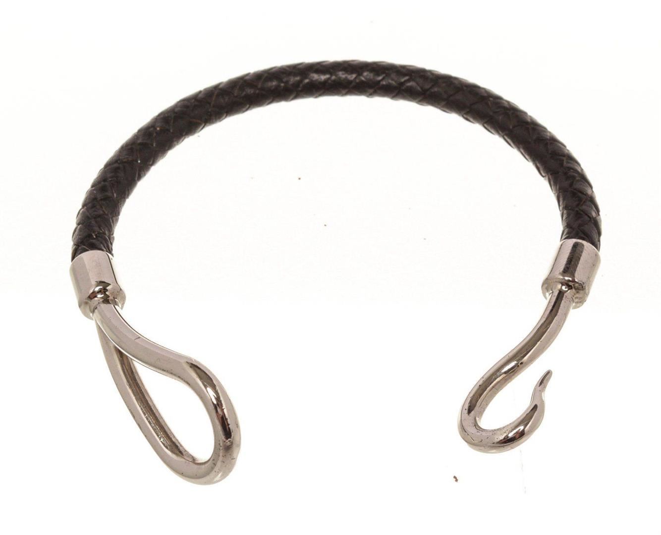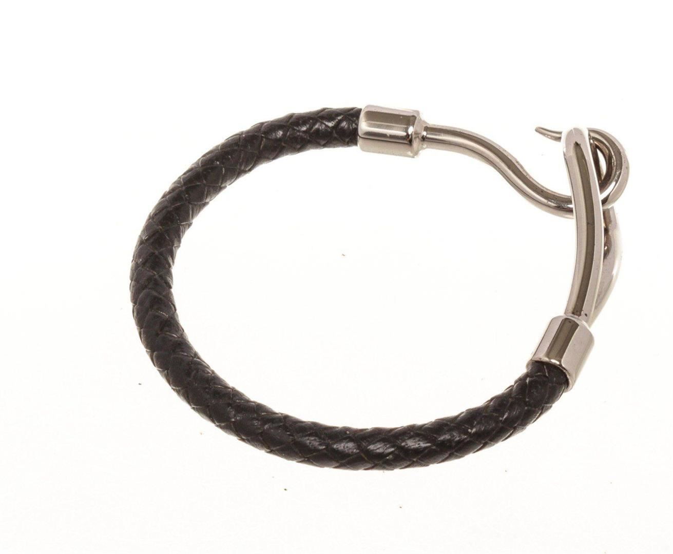 Hermes Black Jumbo Hook Cord Bracelet with gold-tone hardware.