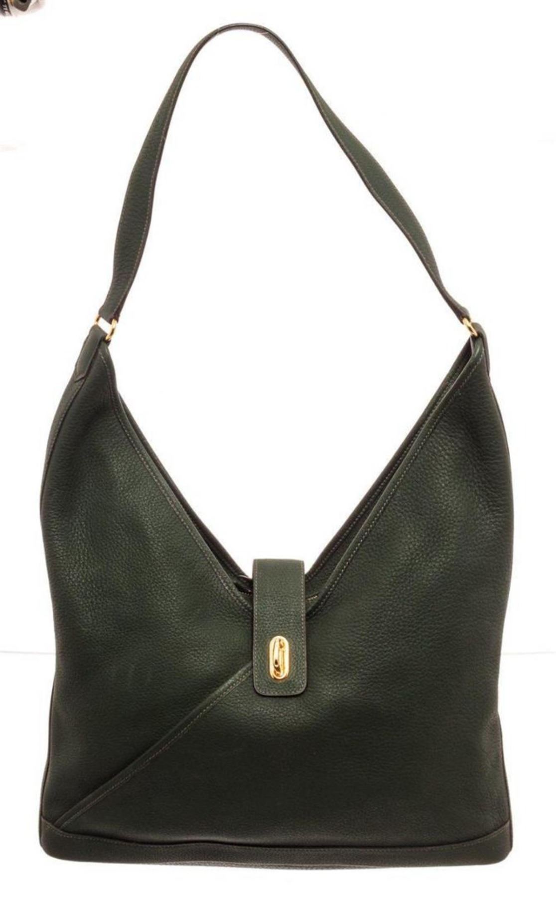 Hermes Black Leather Hobo Bag. Hermes Black Leather Hobo Bag with gold-tone hardware, trim leather, leather lining, shoulder strap and snap closure. MEASUREMENTS: Length 12 in / 30 cm Width 4 in / 10 cm Height 12 in / 30 cmCONDITION: Pre-Owned Good o