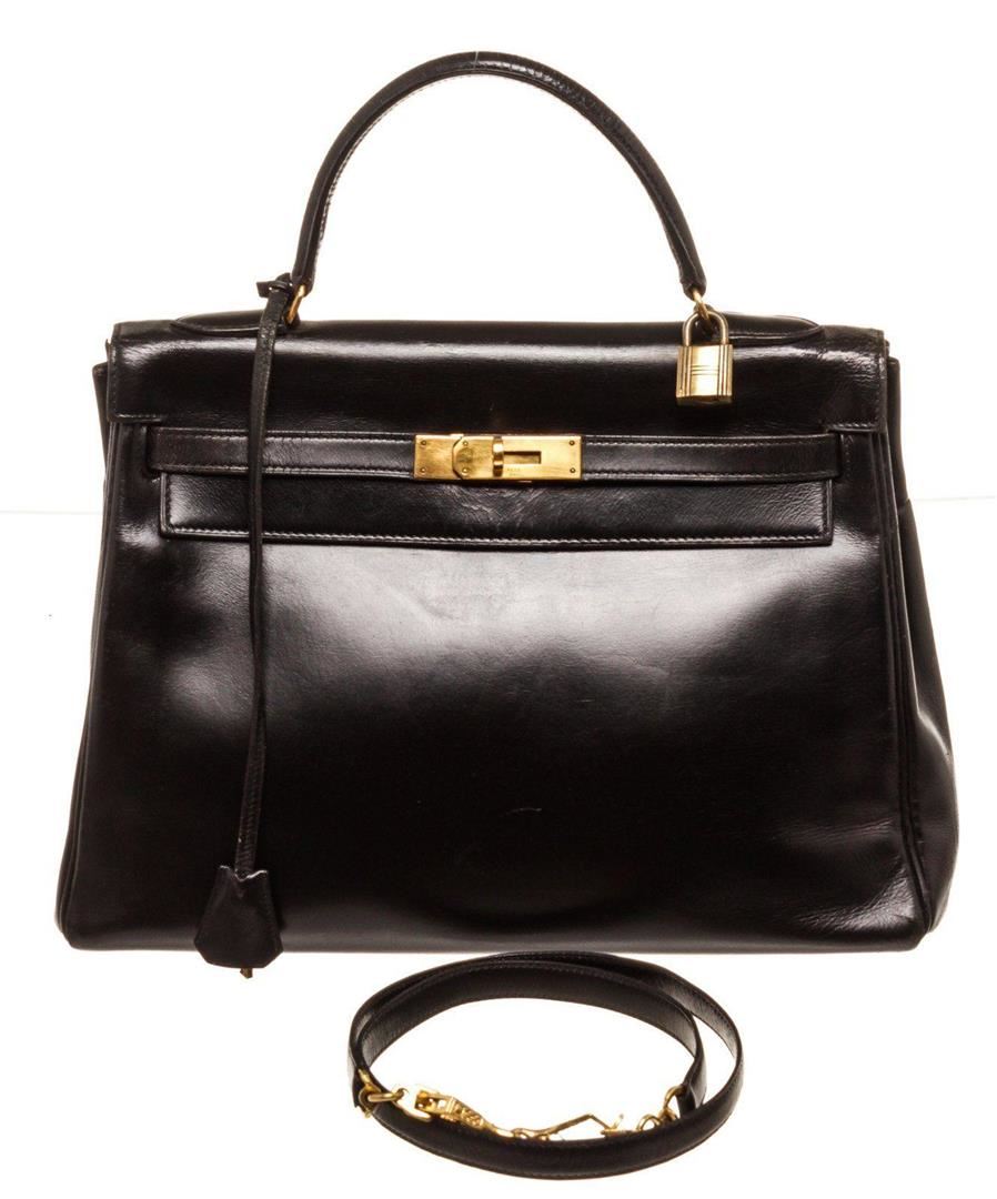 Hermes Black Leather Kelly 32cm Shoulder Bag. Please see photos and description for all available information! Hermes Black Leather Kelly 32cm Shoulder Bag with leather, silver-tone hardware, trim leather, interior zip pocket, top handle, adjustable leath