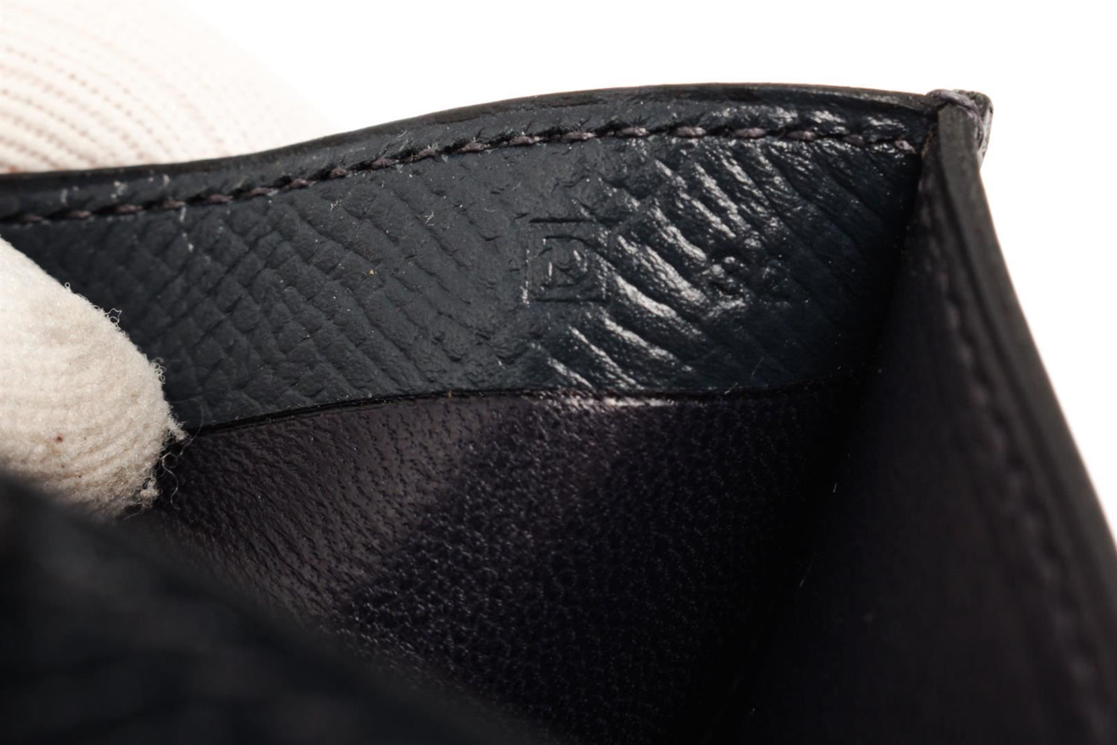 Black leather Hermes two fold card case. 4.1"x3"/10.5cm x7.5 cm