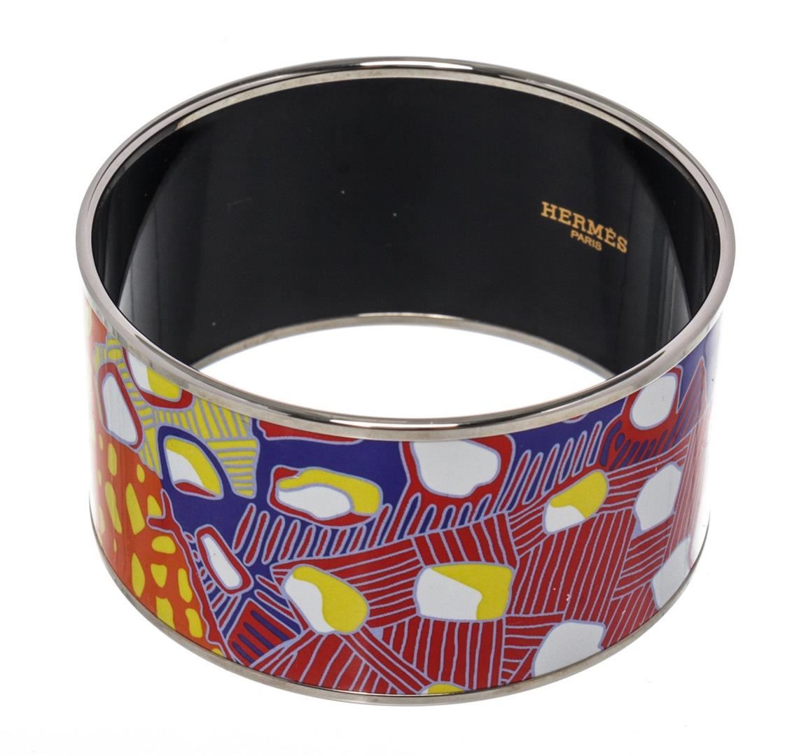 Hermes Black Multicolor Wide Bangle. All available information is listed in the description and shown in the photos. Hermes Black Multicolor Wide Bangle with gold-tone hardware.