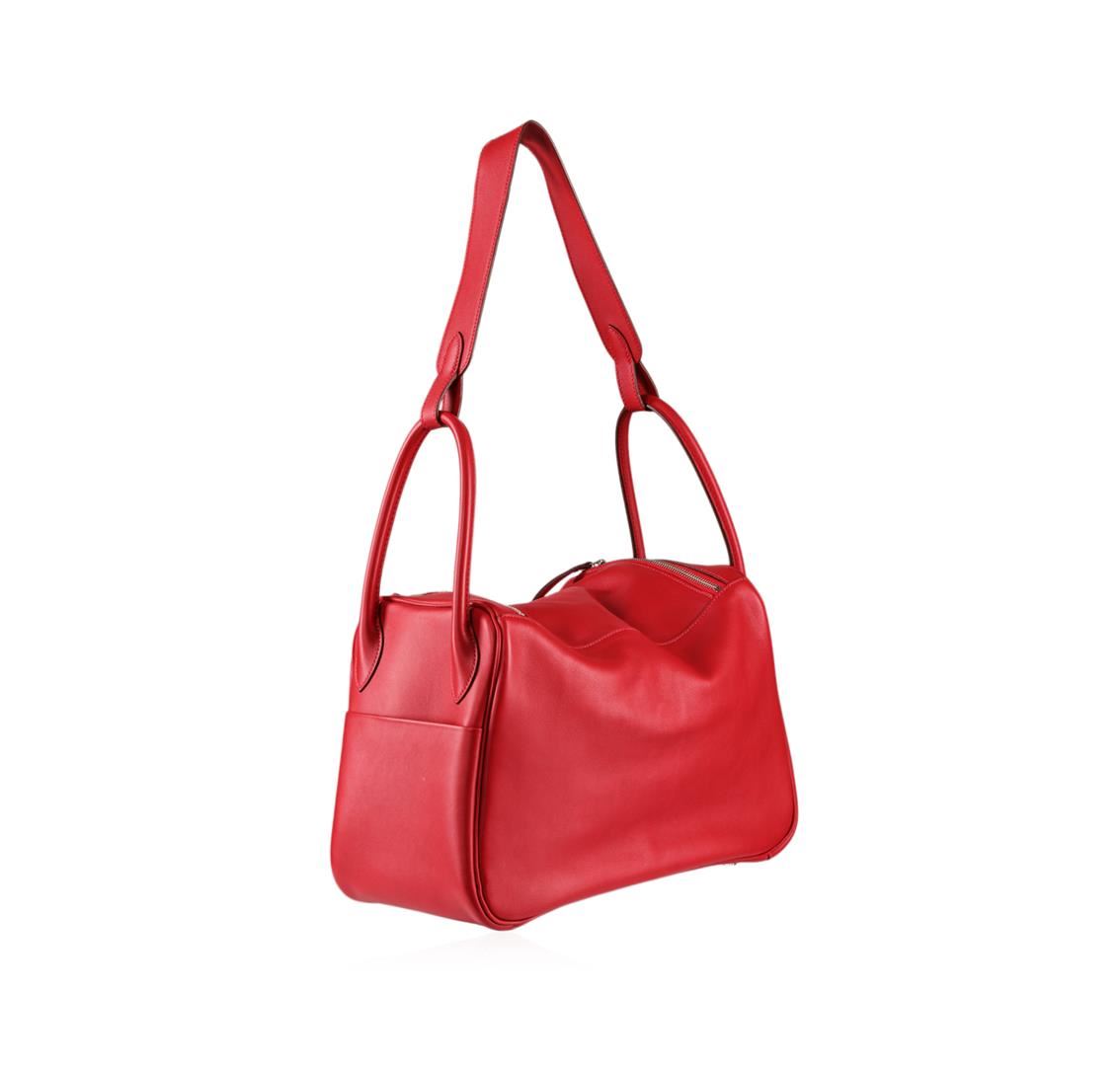 This Hermes bag is contemporary and classy. Made from Clemence leather, its red color is coupled with silver tone hardware for a sophisticated look. It features a top flap with double zip fastenings and a turn lock closure. Shoulder and hand strap design. The fabric lined interior features two pockets. Condition: Good; barely noticeable scratch marks to the leather located on the bottom of the bag. Measurements: 12" wide, 9" tall, 5" handle drop. Includes original orange Hermes box, Hermes care book, and Hermes raincoat. Please note that the Hermes box is slightly torn on one of the corners. The bag itself is in like new condition as described above.