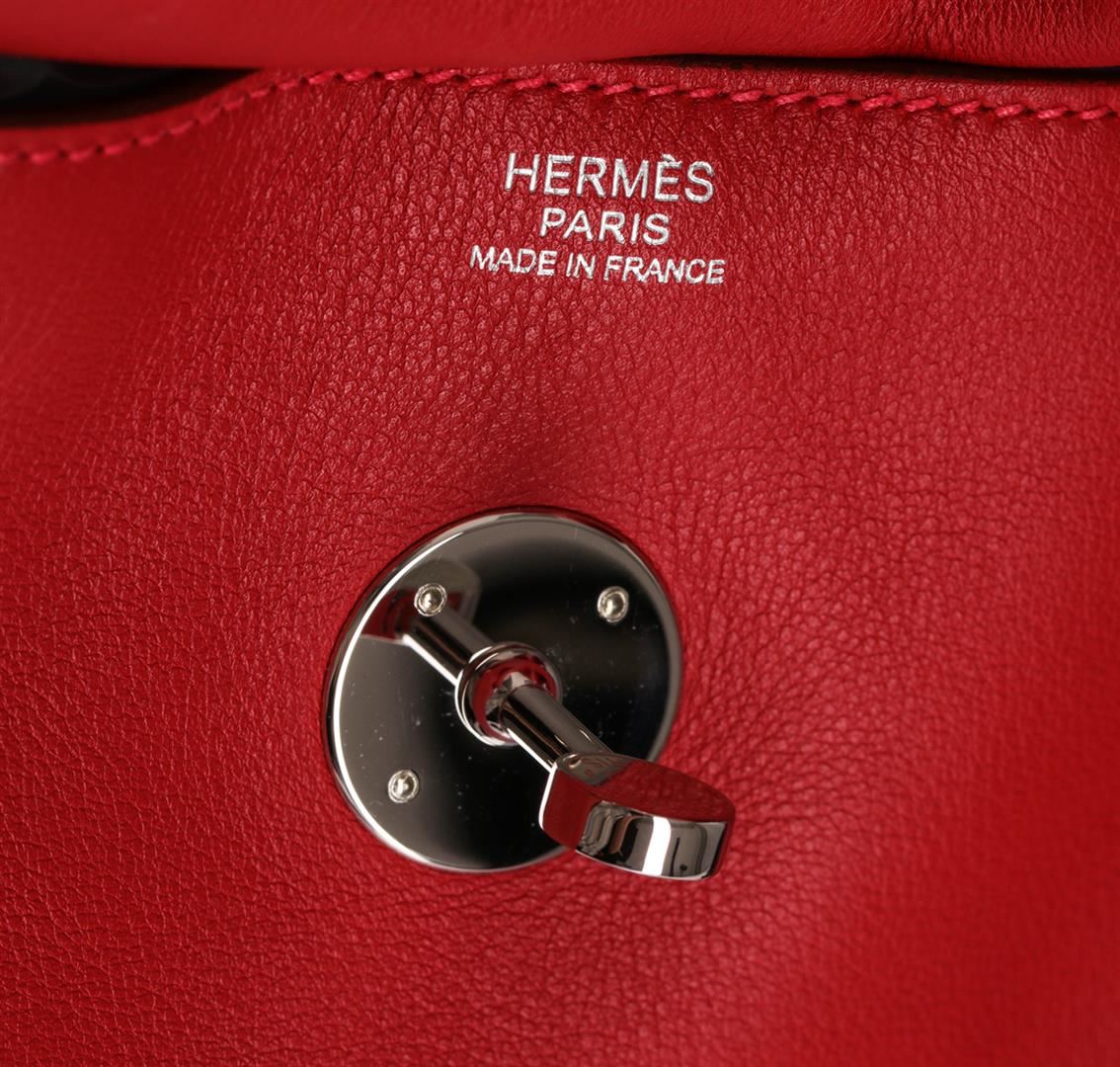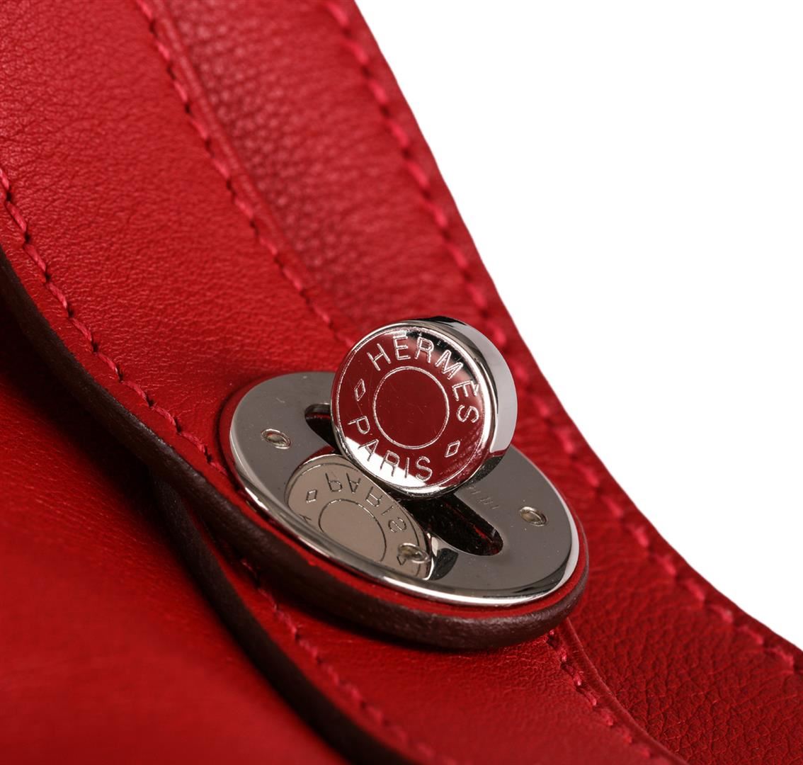 This Hermes bag is contemporary and classy. Made from Clemence leather, its red color is coupled with silver tone hardware for a sophisticated look. It features a top flap with double zip fastenings and a turn lock closure. Shoulder and hand strap design. The fabric lined interior features two pockets. Condition: Good; barely noticeable scratch marks to the leather located on the bottom of the bag. Measurements: 12" wide, 9" tall, 5" handle drop. Includes original orange Hermes box, Hermes care book, and Hermes raincoat. Please note that the Hermes box is slightly torn on one of the corners. The bag itself is in like new condition as described above.