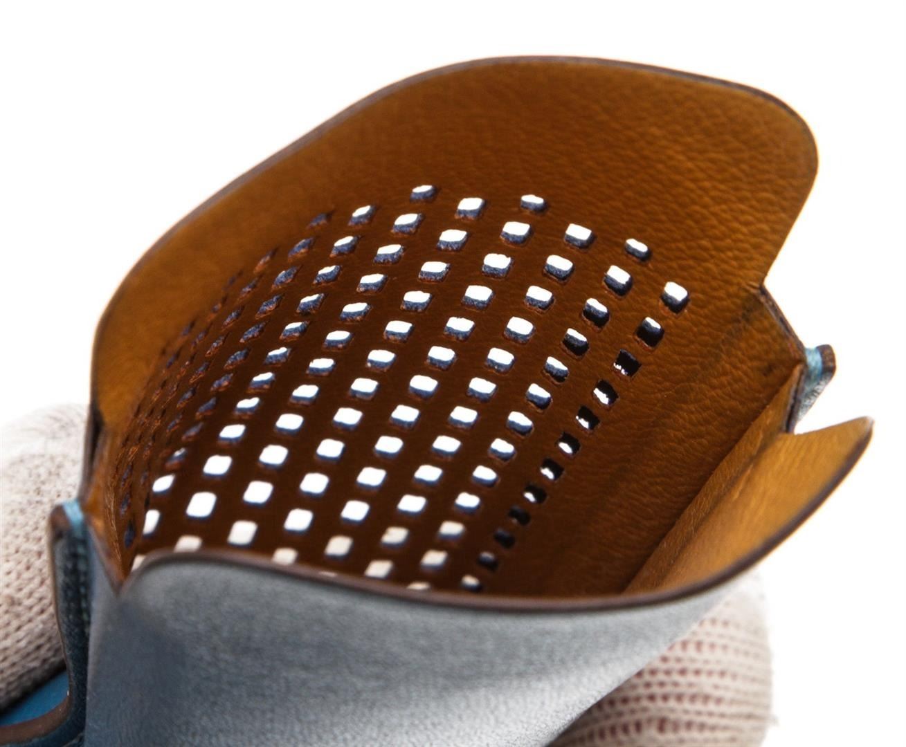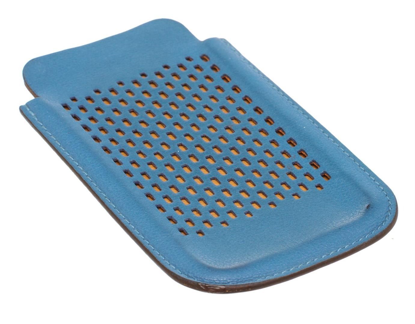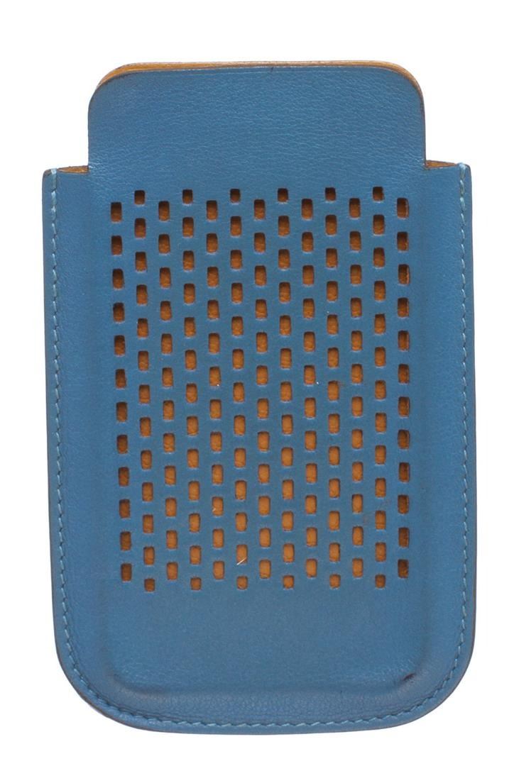 Hermes blue perforated leather iPhone 4 case with brown leather lining.