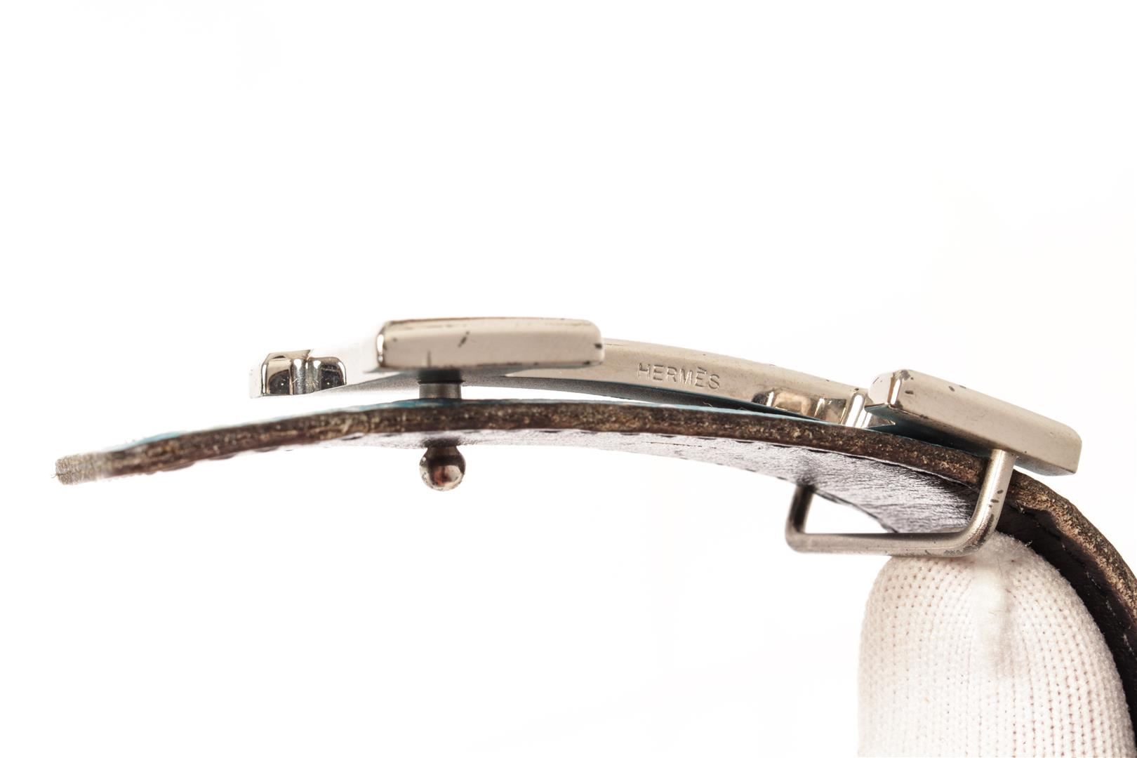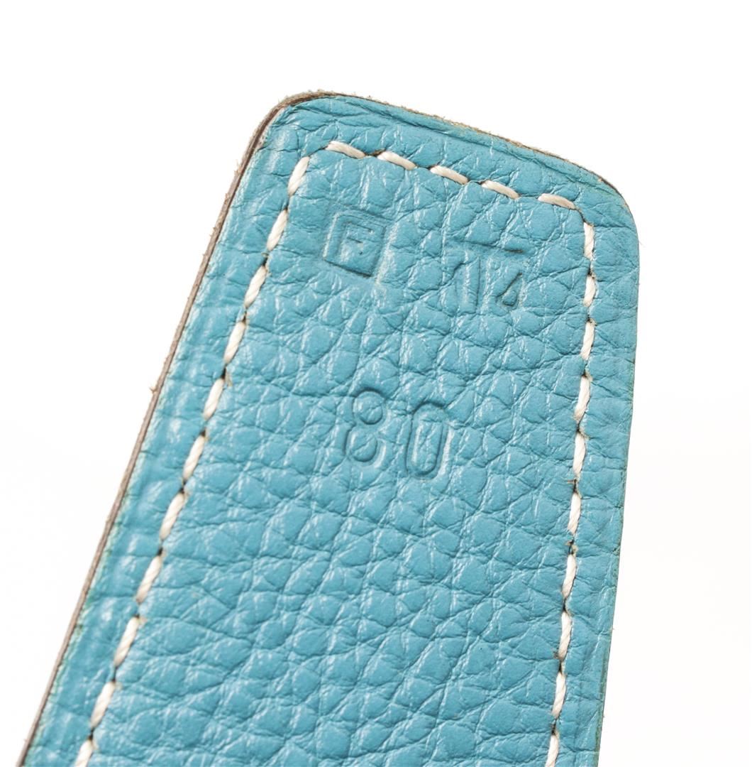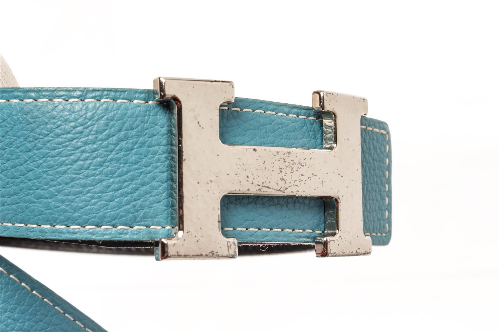 Hermes Blue and Black Leather Silver Tone H buckle Belt. All available information is listed in the description and shown in the photos. Hermes Blue and Black Leather Silver Tone H Buckle Belt with blue leather. 36.6 x 1.3 x 0 inches / 93 x 3.2 x 0 cm