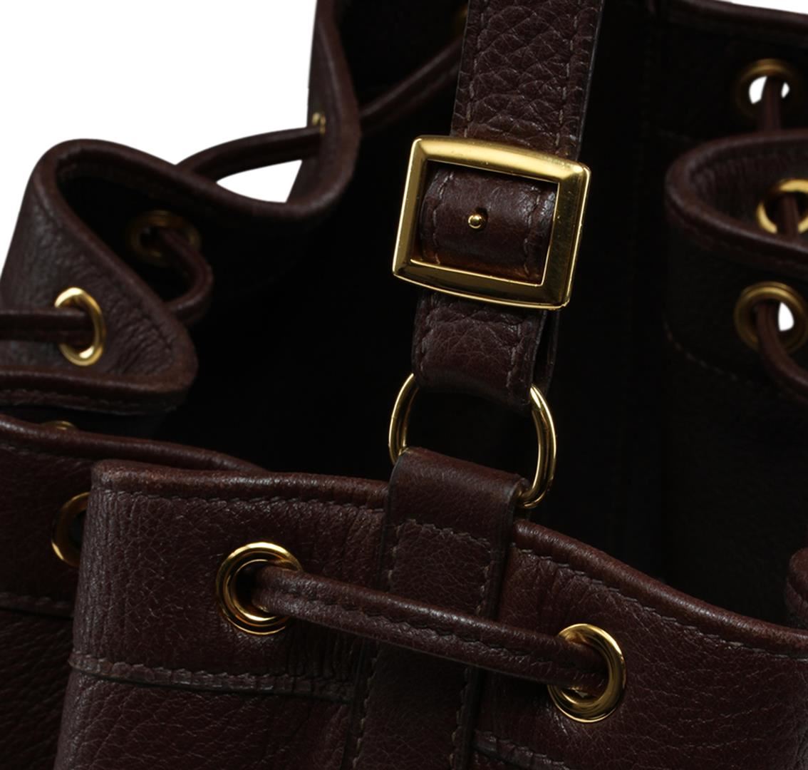 One Hermes Brown Market Drawstring Bucket Shoulder Vintage Tote Bag featuring: stiff and sturdy leather, adjustable shoulder sling, with drawstring closure. Measurements: 11 x 11 x 5.5 in. Authenticity details: Hermes Paris - Made in France.