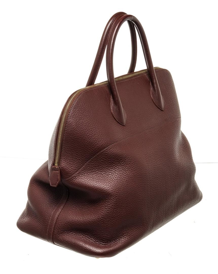 One Hermes Brown Leather Bolide 45cm Shoulder Bag. Item is sold AS-IS. All available information is listed in the description and shown in the photo. Hermes Brown Leather Bolide 45cm Shoulder Bag with leather, gold-tone hardware, trim leather, dual top handle and zipper closure.