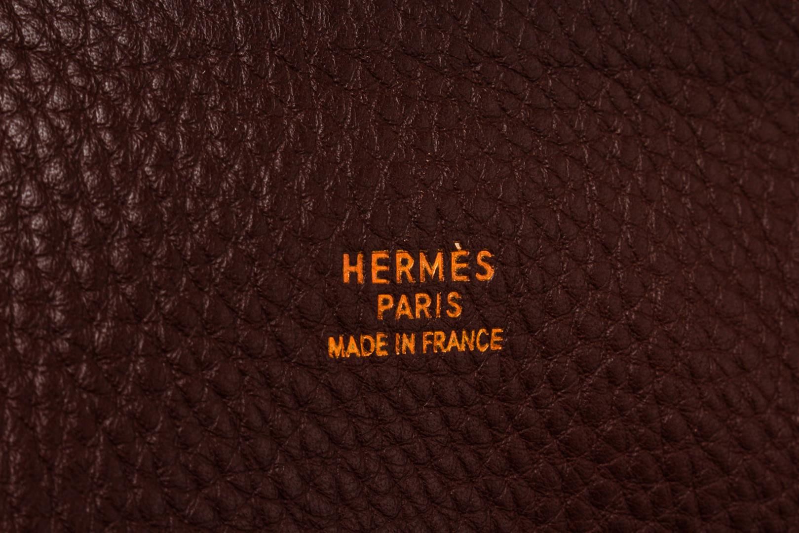 Hermes Brown Leather Bolide Shoulder Bag with leather, gold-tone hardware, trim leather, dual top handle and zipper closure.