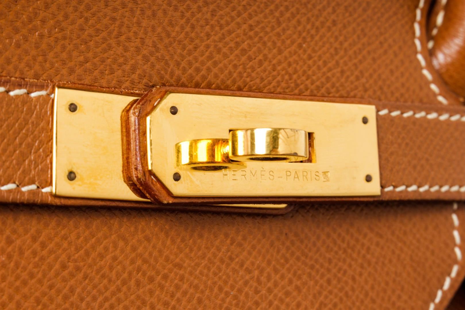 One Hermes Brown Leather Brikin 40cm Satchel Bag. Item is sold AS-IS. All available information is listed in the description and shown in the photo. Hermes Brown Leather Brikin 40cm Satchel Bag with leather, gold-tone hardware, trim leather, interior slip pocket, dual top handle and turn lock closure.